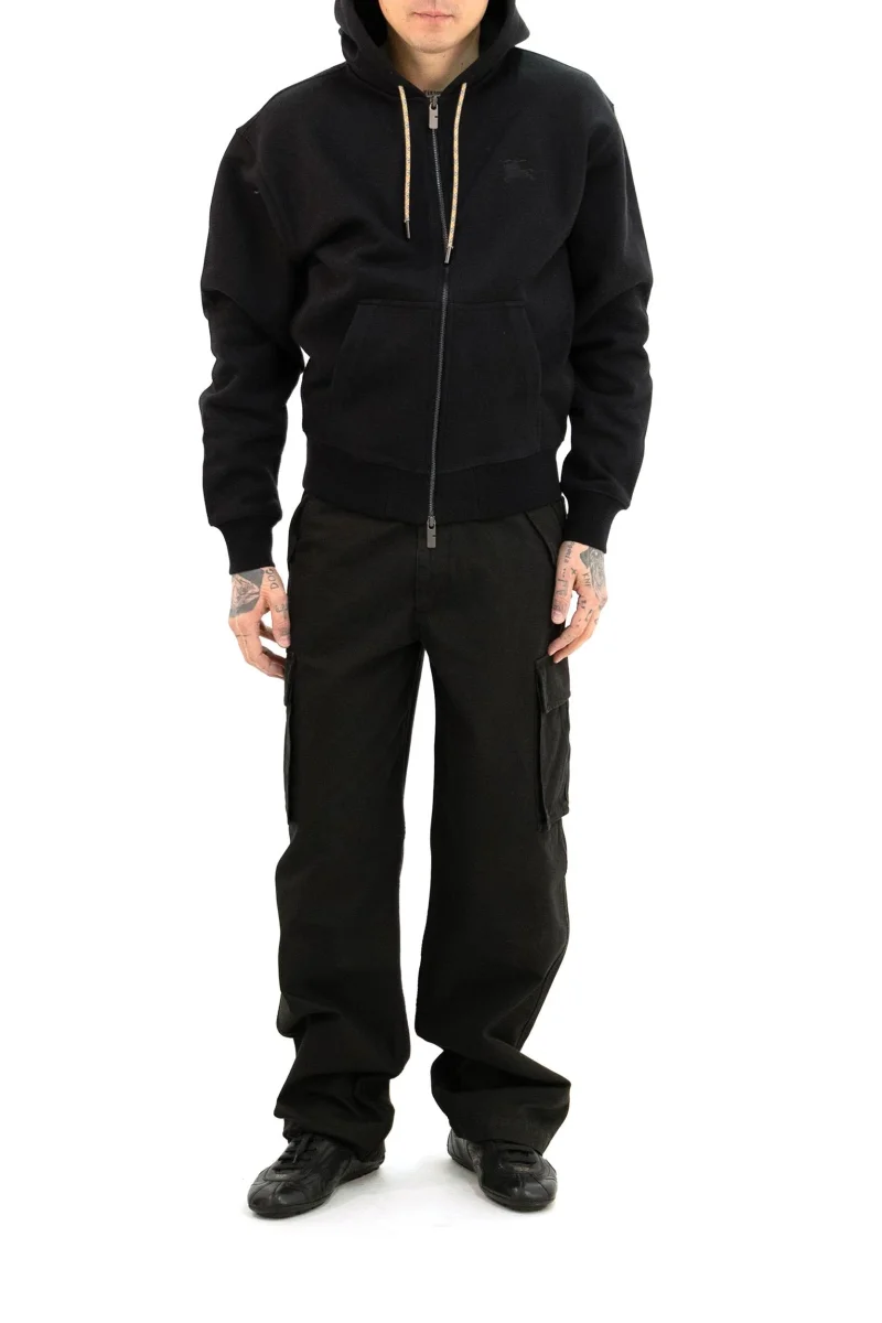 Felpa con capuccio in cotone di colore nero Composizione: 99% cotone 1% elastan.