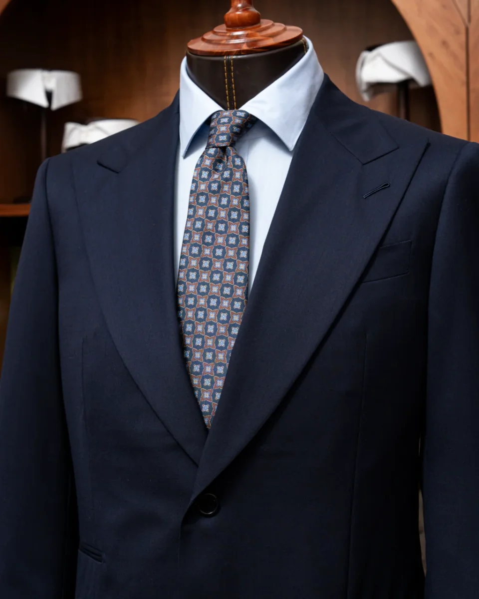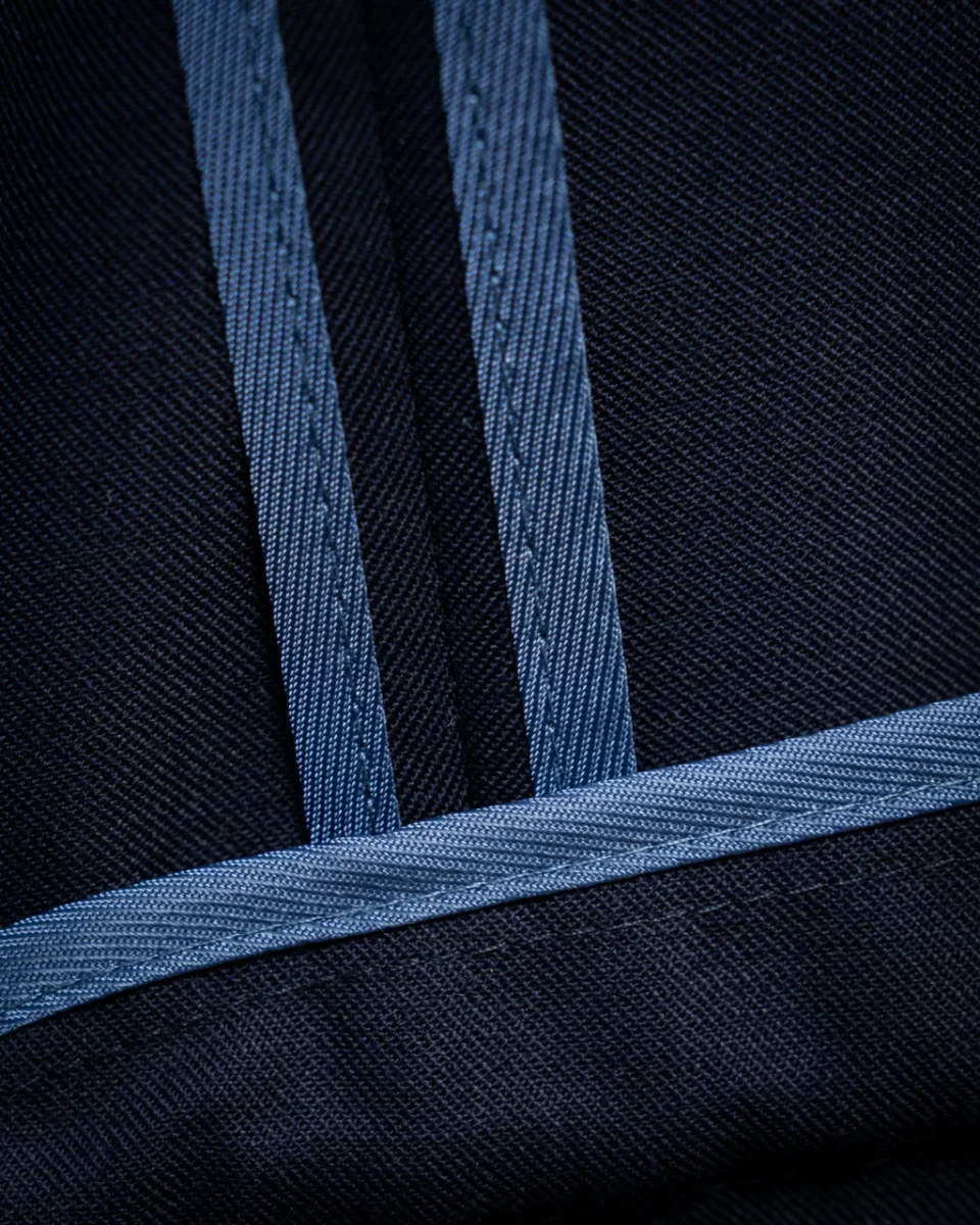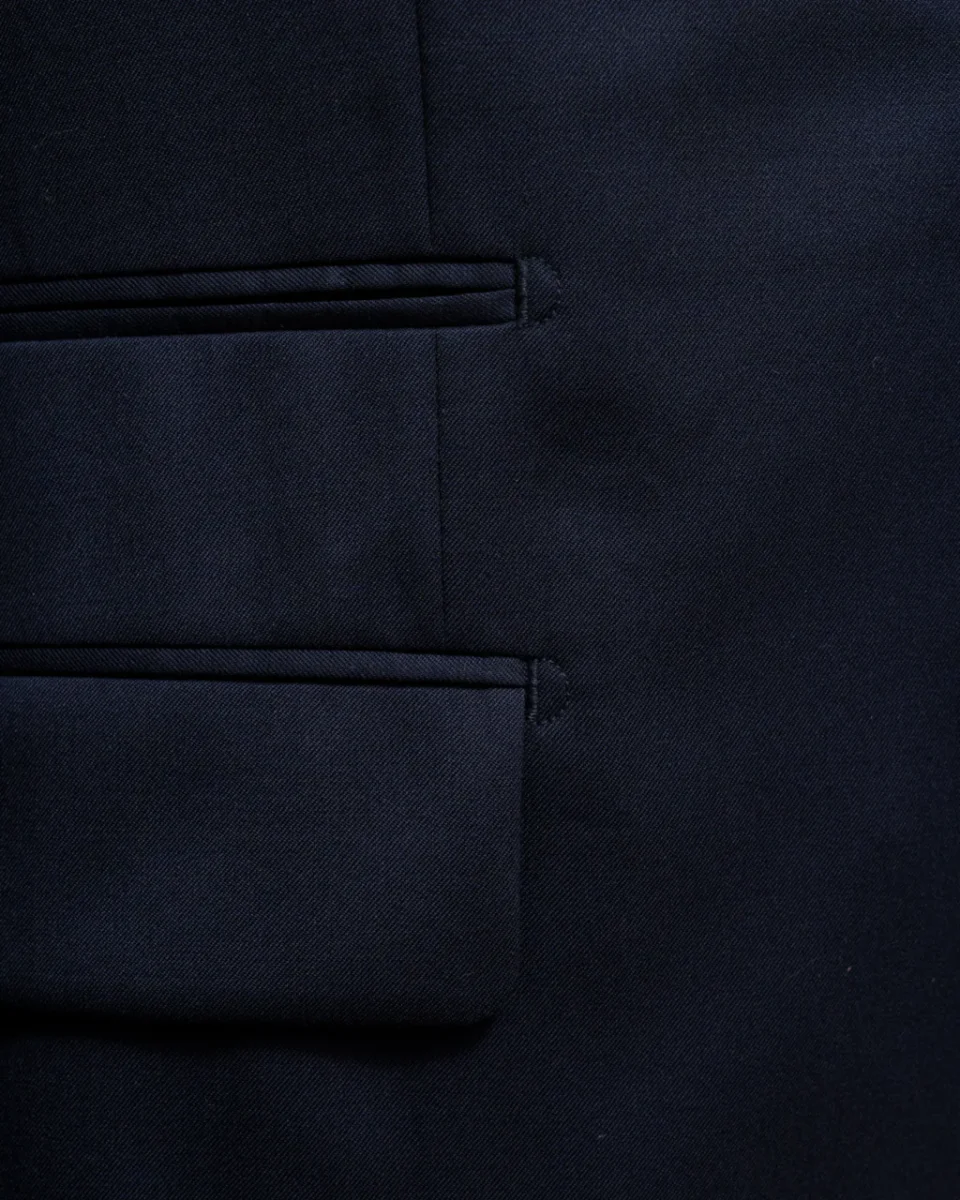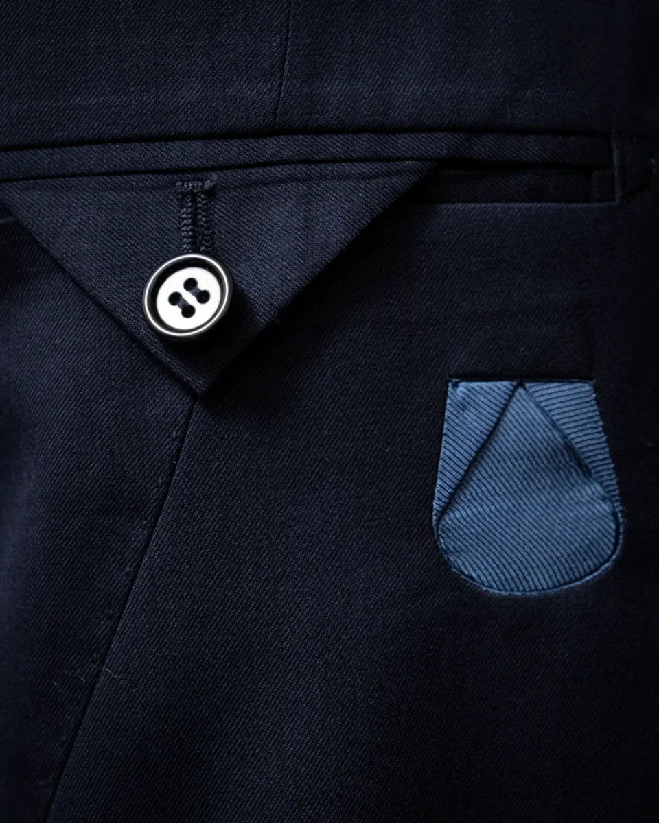 - Sfoderata blu: La giacca è sfoderata in blu, offrendo un tocco di eleganza discreta e una sensazione di comfort al tempo stesso. Questo particolare contribuisce alla leggerezza e alla traspirabilità del capo, ideale per le giornate più calde.