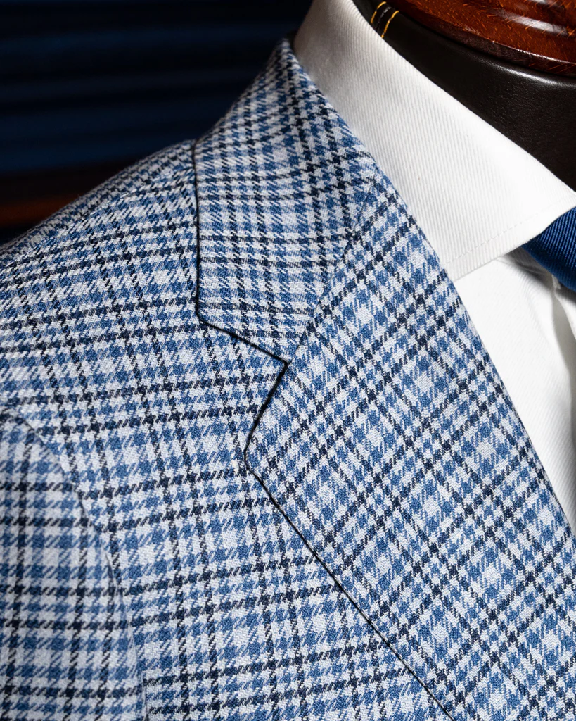 - Tessuto pied de poule azzurro di alta qualità: Realizzata con tessuto pied de poule azzurro di alta qualità, la Giacca Giotto offre comfort e resistenza. Il motivo a quadri aggiunge un tocco di originalità al tuo look, mentre la fodera blu completa l’ensemble con stile.