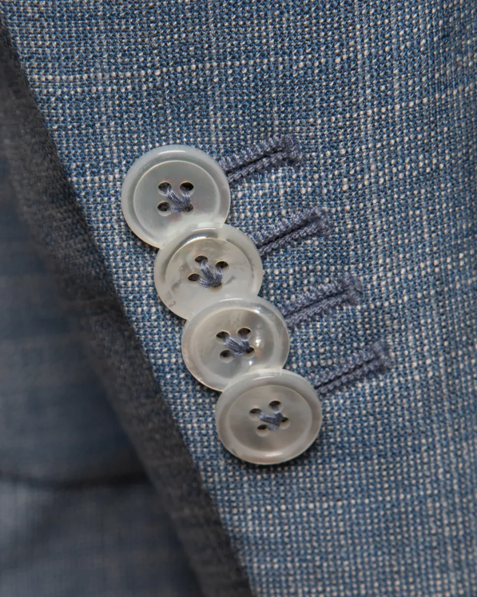 - Chiusura frontale: due bottoni eleganti e discreti, che valorizzano la linea pulita della giacca.