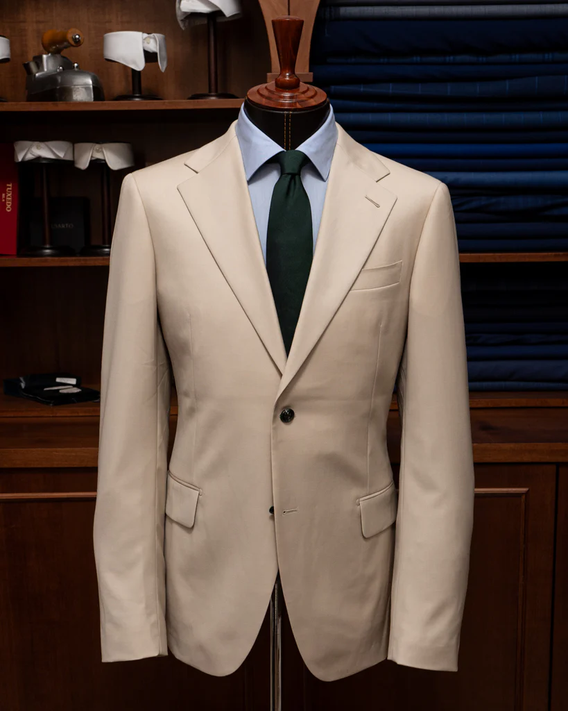 - Carattere: Unisce la formalità della giacca a due bottoni alla spensieratezza di un tessuto leggero e naturale.