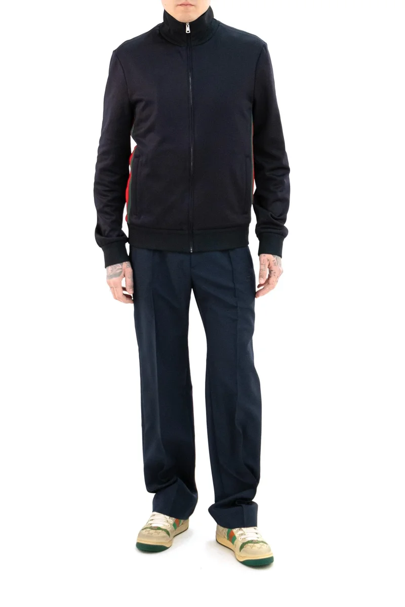 Giacca in jersey tecnico di colore blu Composizione: 55% poliestere 45% cotone. MADE IN ITALY.