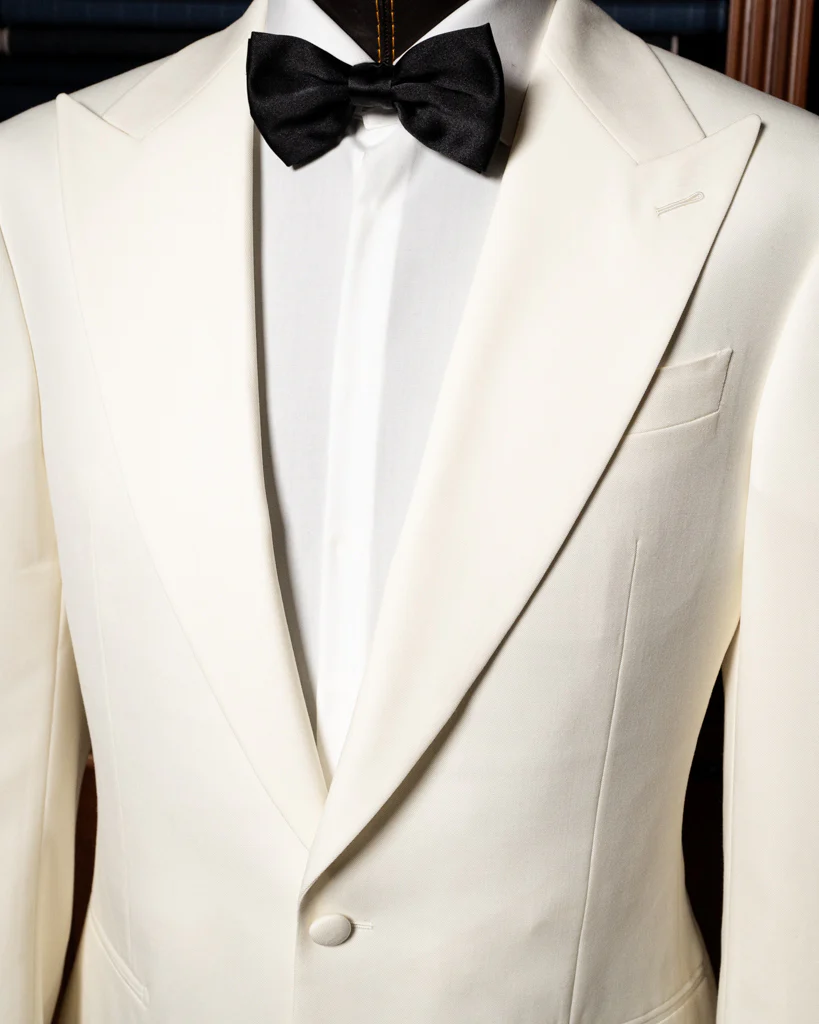 La Giacca Modernico Smoking Bianco è un esercizio di sottrazione ed eleganza. Realizzata in una tonalità bianco ottico che emana luce e prestigio, questa giacca monopetto si distingue per la sua linea ultra-pulita. Il design a un solo bottone coperto crea una tensione dinamica verso l’alto, focalizzando l’attenzione sul maestoso rever a lancia, elemento che conferisce una postura scultorea e una proiezione atletica alle spalle.