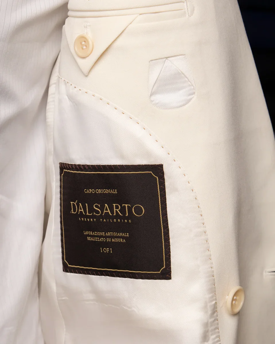 La Giacca Perugino Bianco Unito è la massima espressione del lusso formale firmato Dalsarto. Un capo iconico che fonde la maestosità del doppiopetto con una pulizia estetica radicale, pensato per chi vuole dominare la scena con un’eleganza scultorea e luminosa.