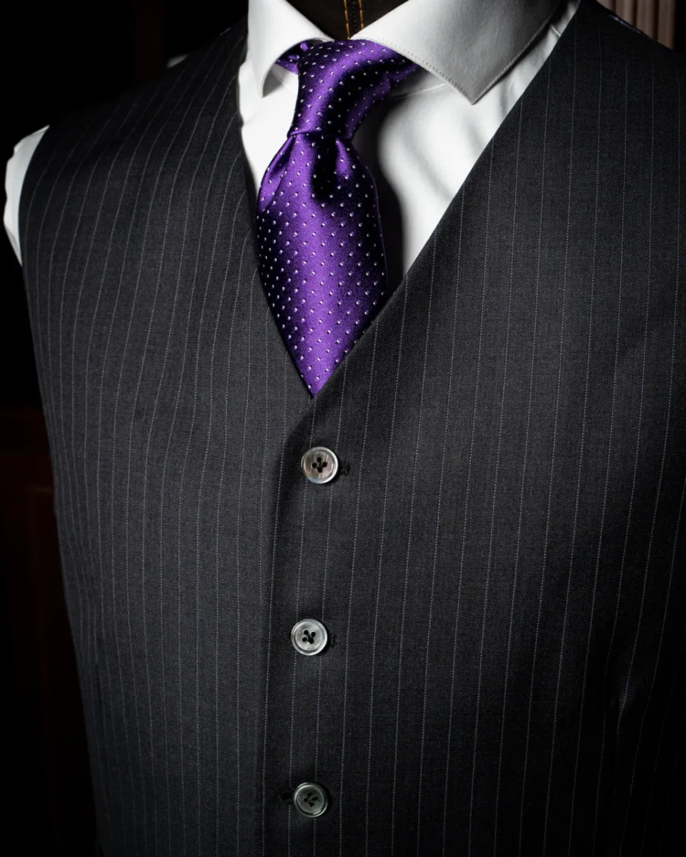 - Realizzato con Tessuto di Alta Qualità: Realizzato con tessuto gessato grigio, questo gilet offre comodità e durata, assicurando che mantenga la sua forma e la sua bellezza.