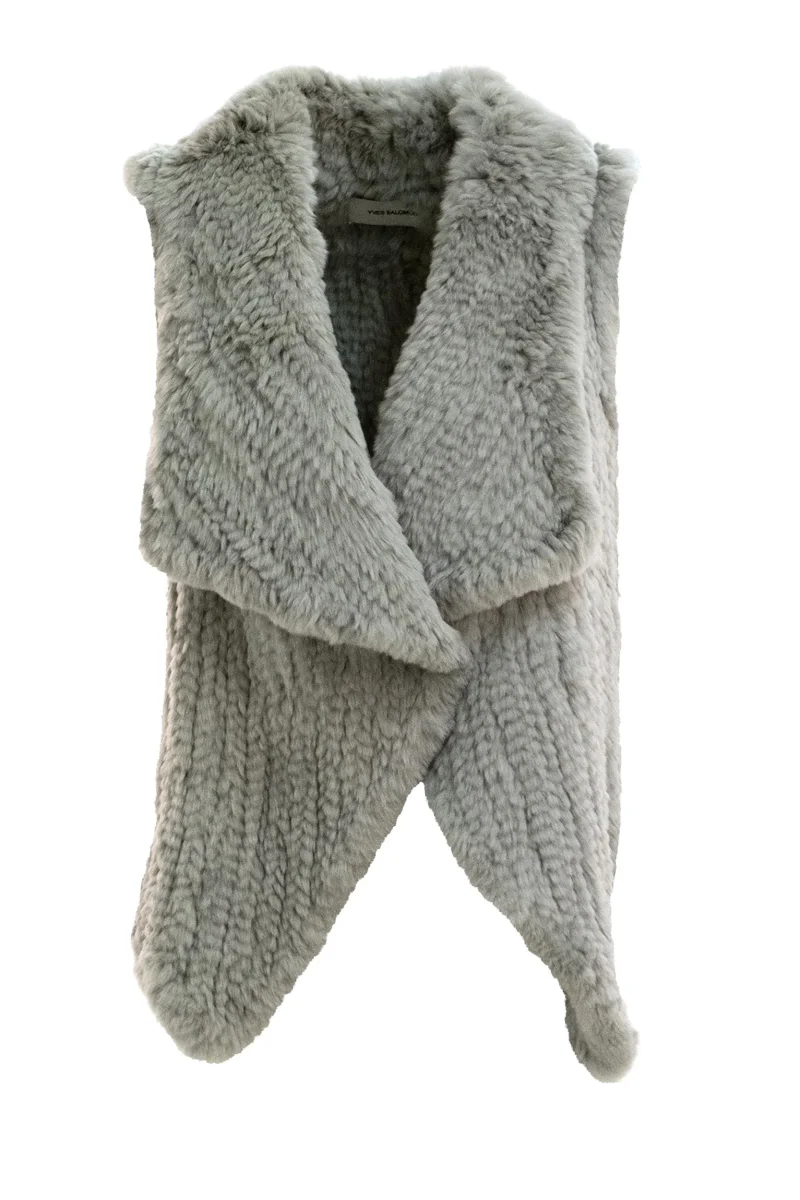 YVES SALOMON Gilet in coniglio color grigio Composizione: 100% Rex.