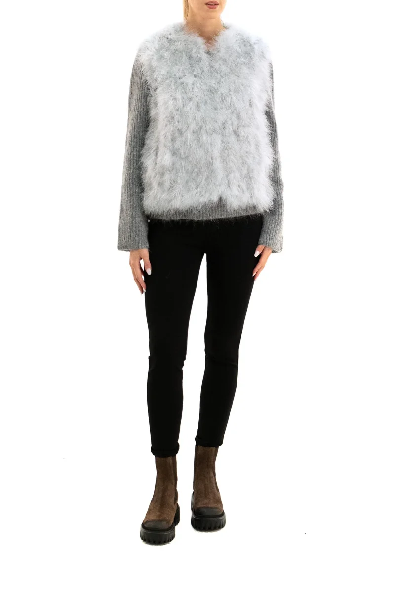 YVES SALOMON Gilet in piuma color grigio Composizione: 100% piume di tacchino; fodera: 100% seta.