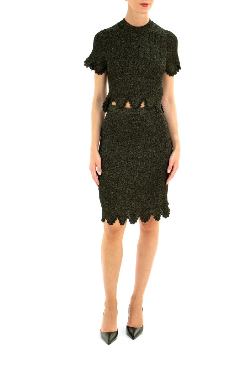 Gonna Composizione: 77% viscosa 19% fibra metallizzata 2% lana 1% poliammide 1% poliuretano.