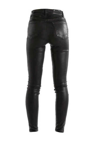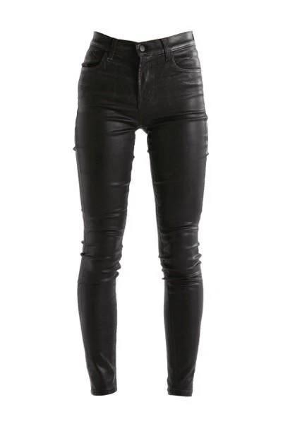 J Brand regala a tutte le donne un pantalone super skinny che aderisce alle gambe come una seconda pelle, esaltandone la forma. Realizzato in denim rivestito di pelle per rendere i pantaloni più confortevoli e conferirgli una maggiore vestibilità. In linea con le tendenze degli ultimi anni il pantalone presenta una vita alta e un fondo stretto. La chiusura è con bottone tono su tono e il modello è dotato di cinque tasche (tre sul davanti e due sul retro) proprio come i jeans classici.