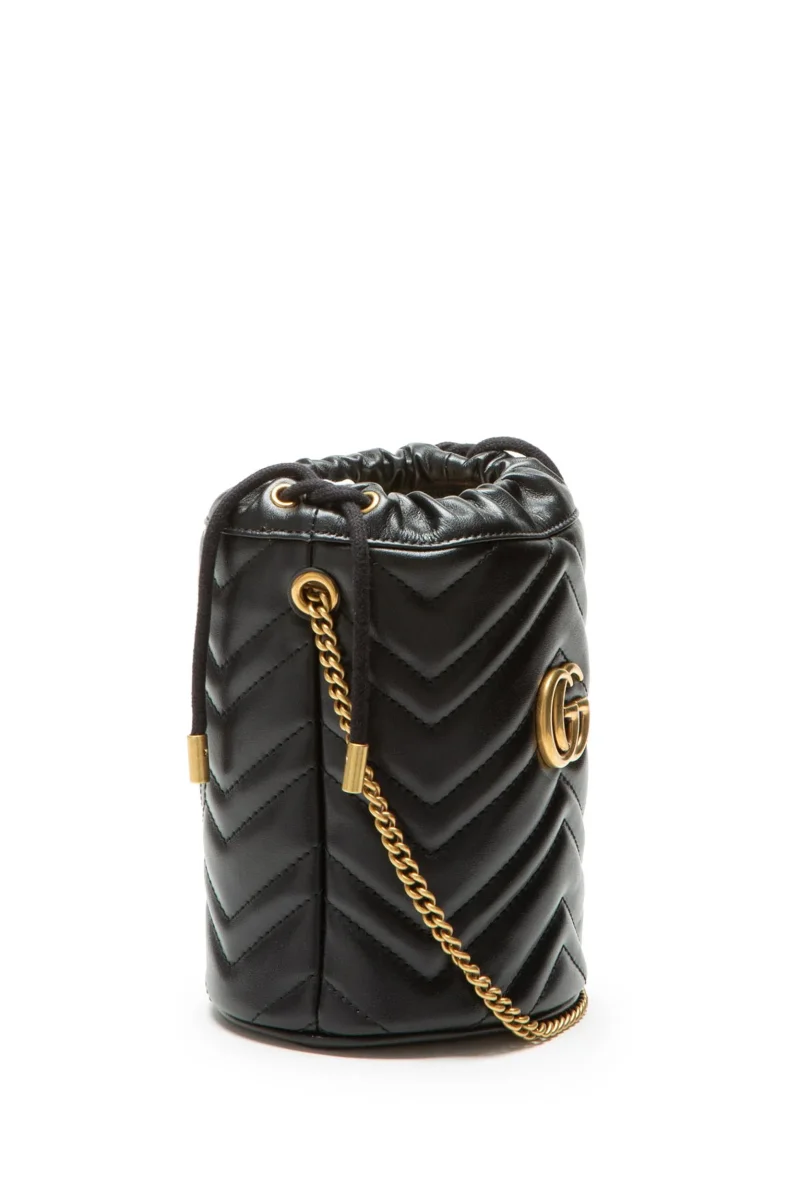 Mini Borsa a Secchiello GG Marmont in 100% pelle di vitello. Prodotta in Italia. Misure: larghezza 19 cm x altezza 17 cm