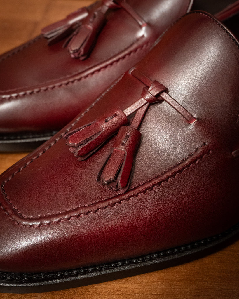 I Mocassini Bordeaux incarnano lo stile senza tempo e il comfort per l’uso quotidiano. Con una suola liscia con chiodini e cuciture goodyear, questi mocassini in pelle bordeaux sono la scelta ideale per chi cerca un mix perfetto tra eleganza e praticità.