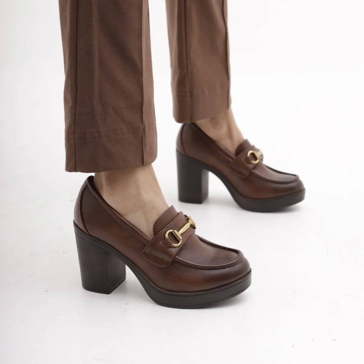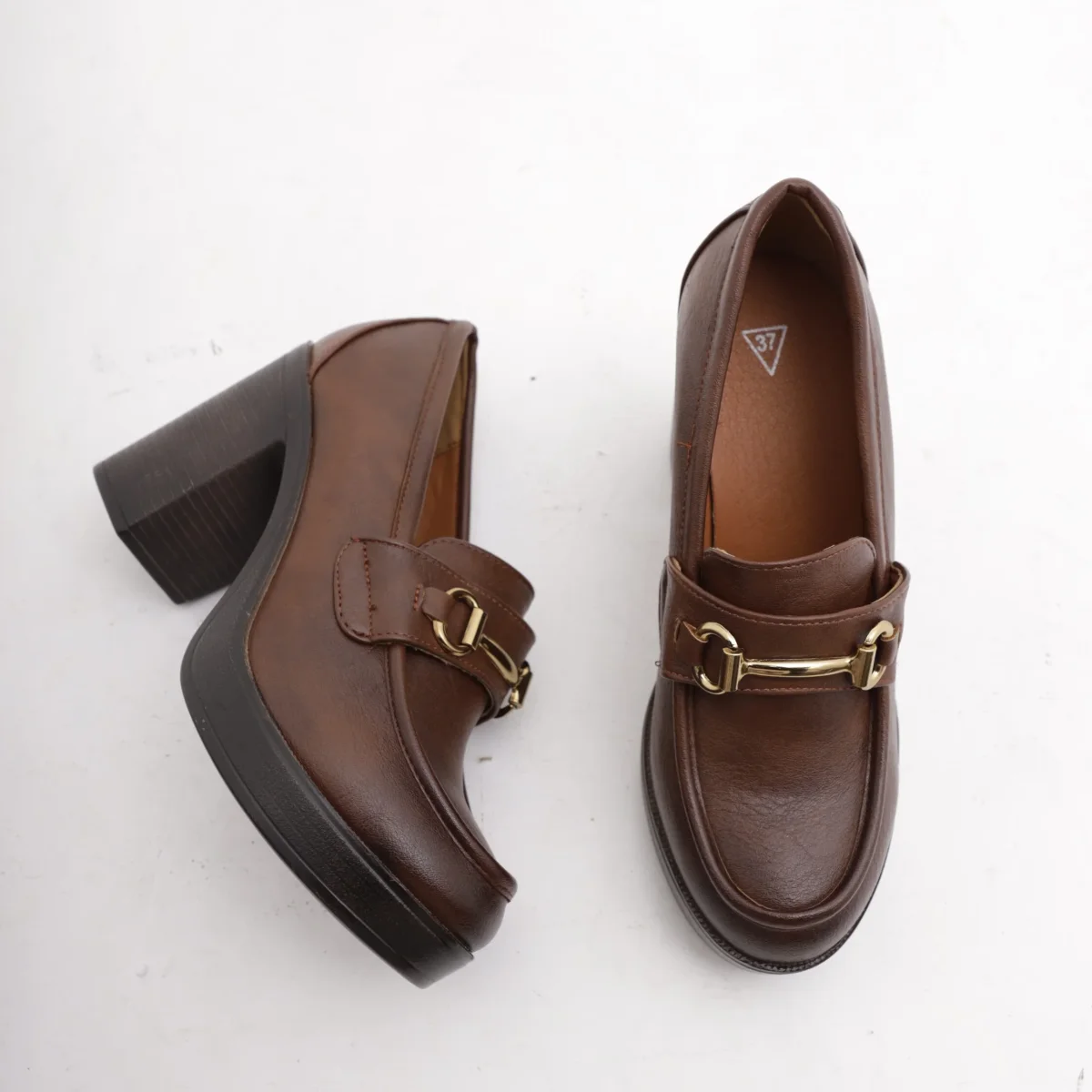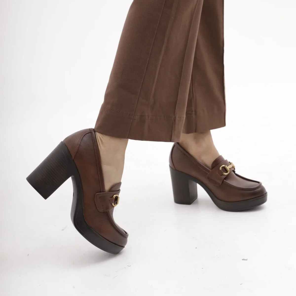 Scarpa con tacco in vernice colore Beige. Con dettaglio dorato sul tacco e cinturino alla caviglia regolabile. Disponibile anche in Nero.