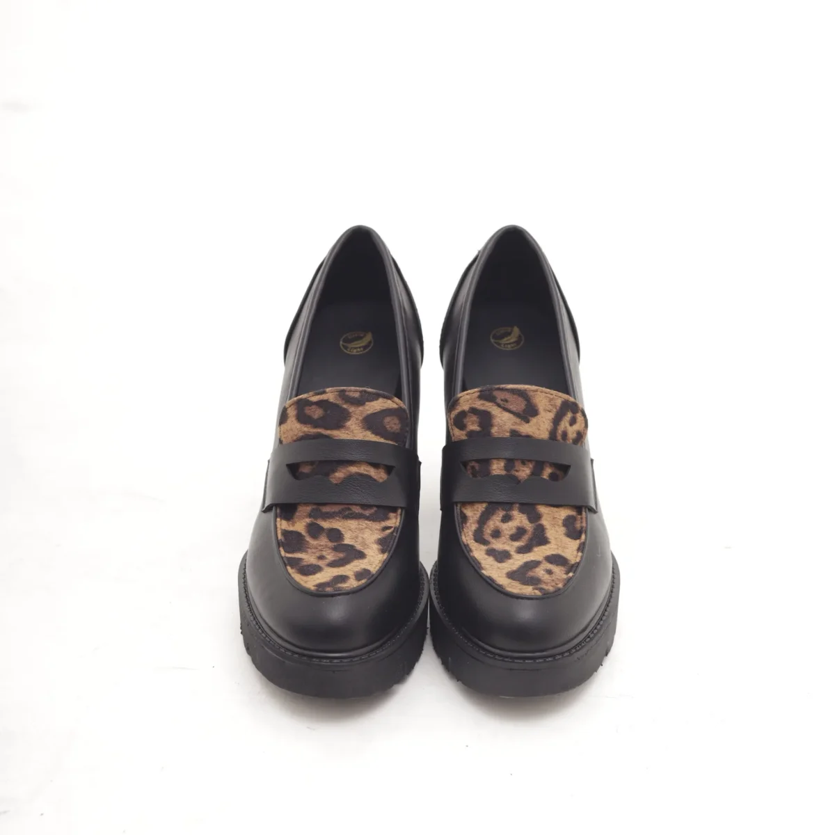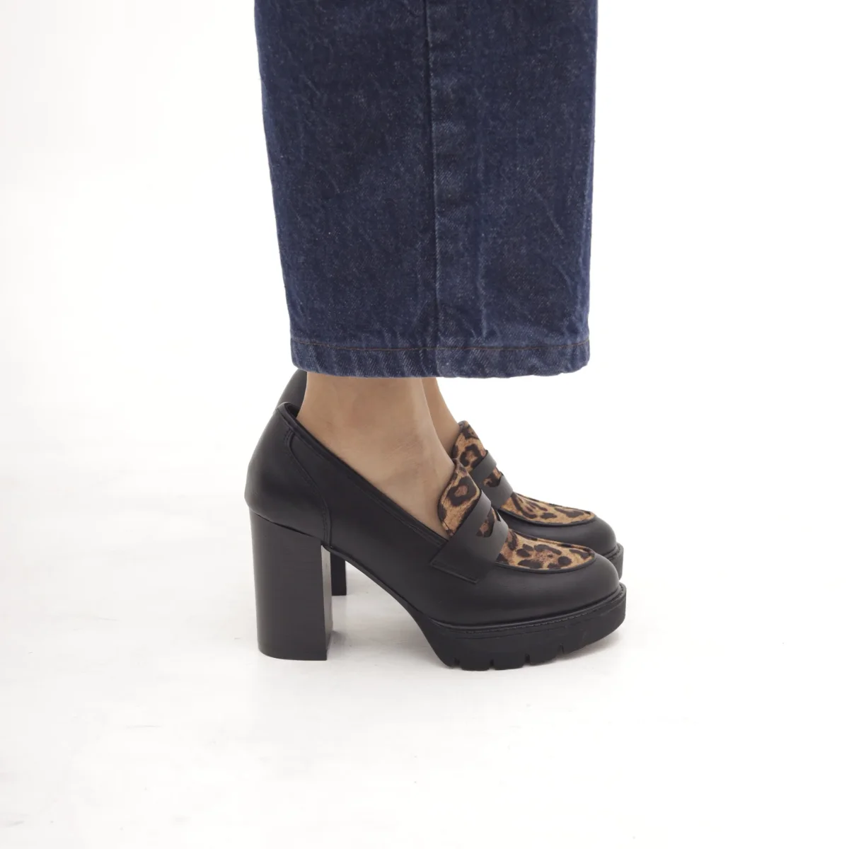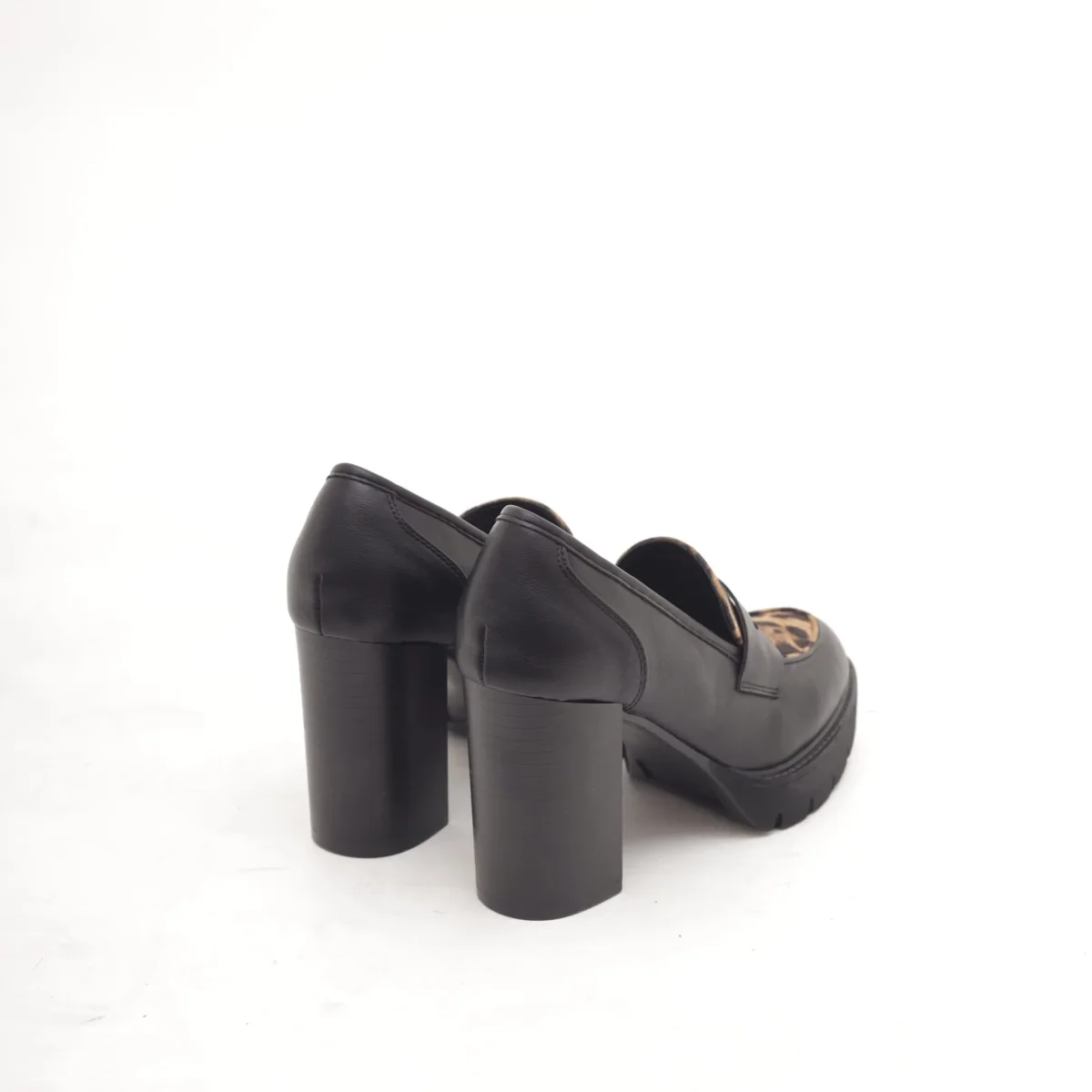 Scarpa con tacco bicolore realizzata in eco-pelle Cuoio. Decorato con fiocchietto. Disponibile in altri colori Nero e Panna.