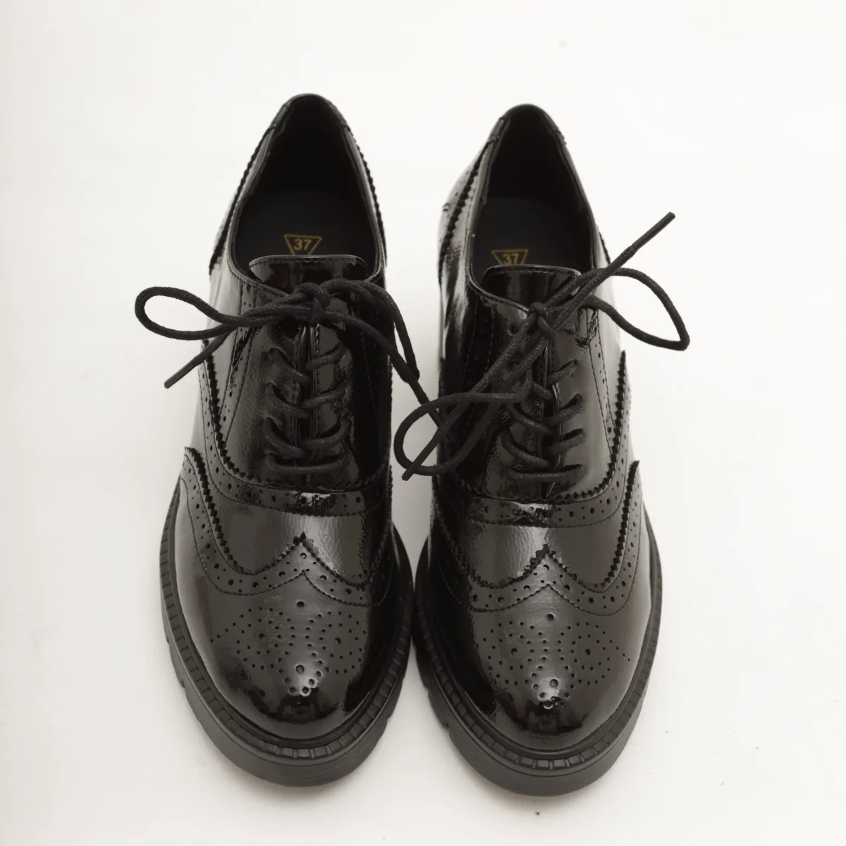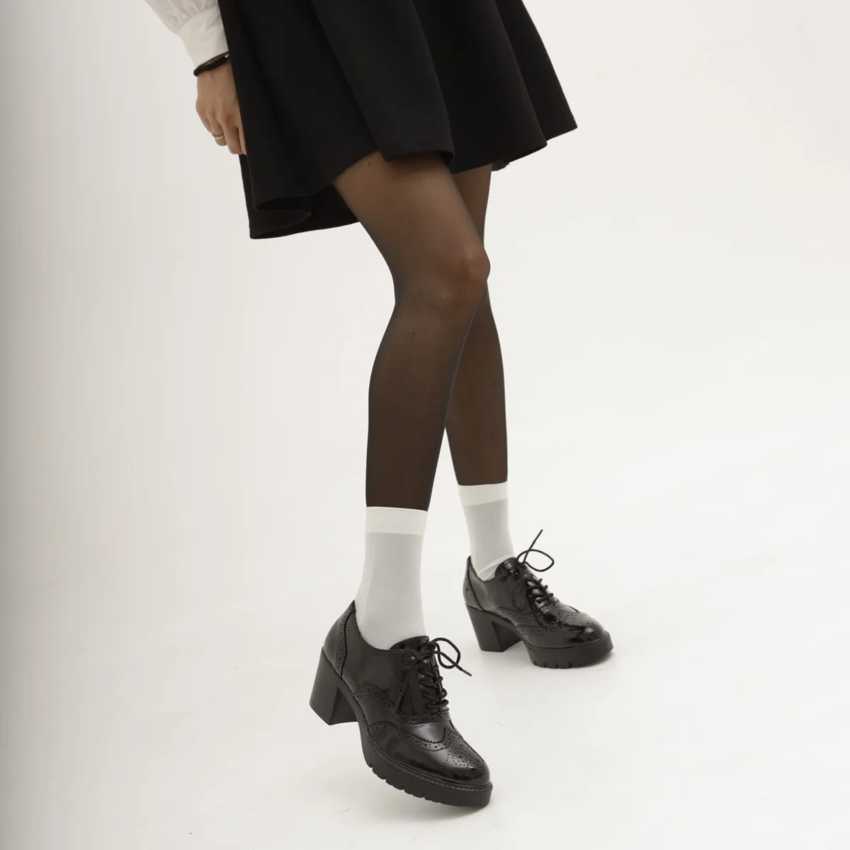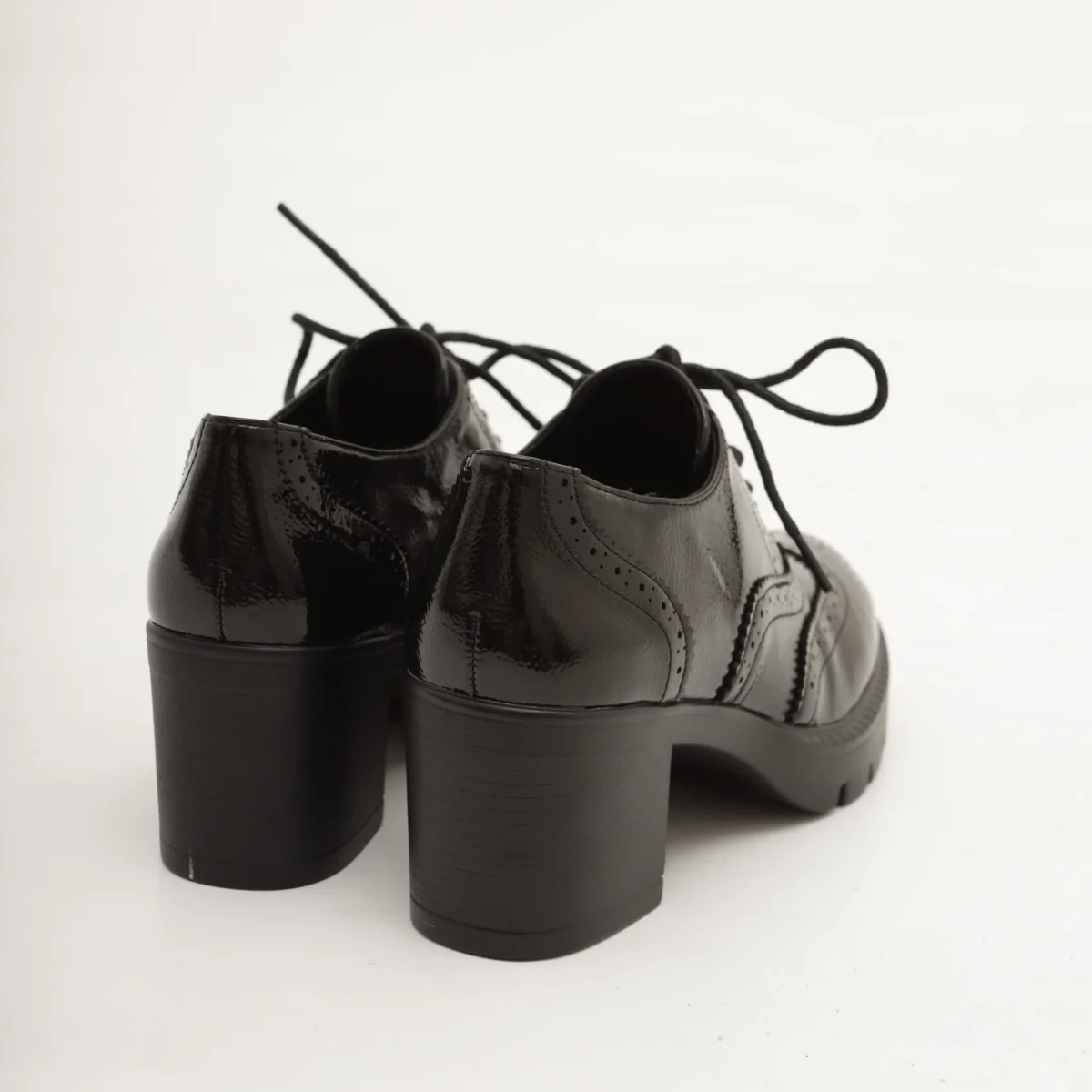 Scarpa con tacco in vernice colore Beige. Con dettaglio dorato sul tacco e cinturino alla caviglia regolabile. Disponibile anche in Nero.