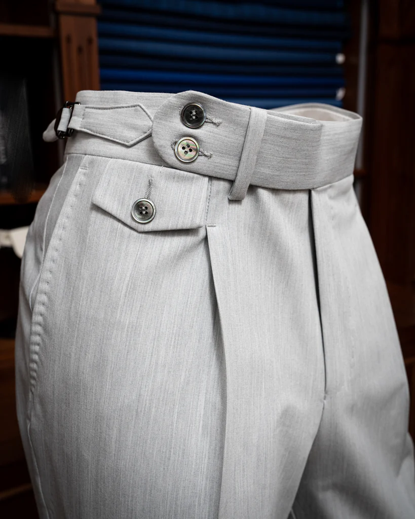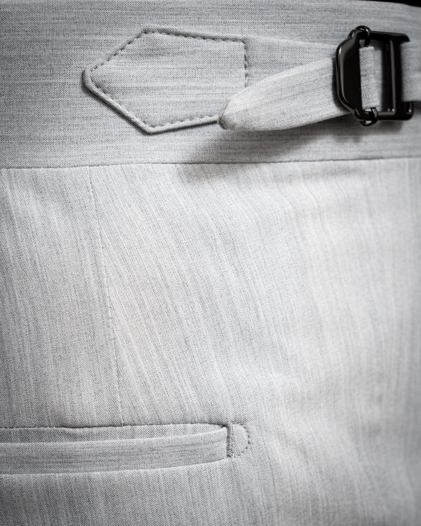 - Una Pinces: Presenta una pinces sulla parte anteriore del pantalone, aggiungendo struttura e definizione alla vestibilità per una silhouette elegante e professionale.