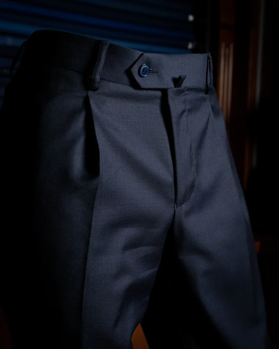 Pantalone Tiziano Blu Medio: Raffinatezza e Professionalità per l’Uomo d’Affari
