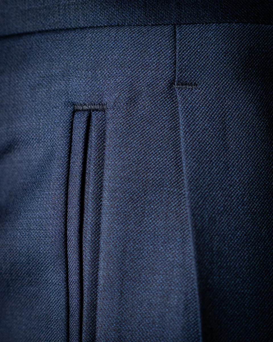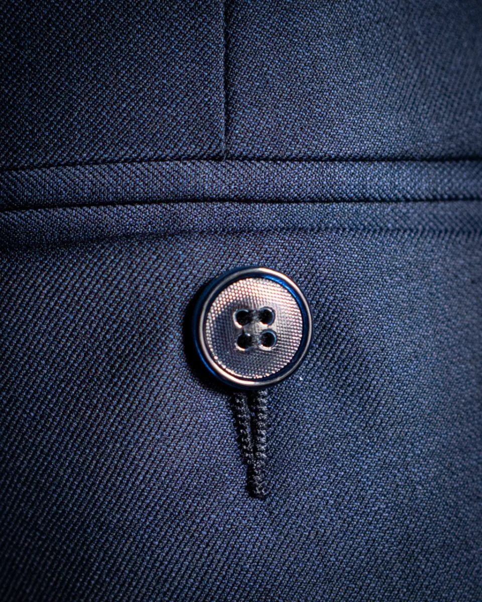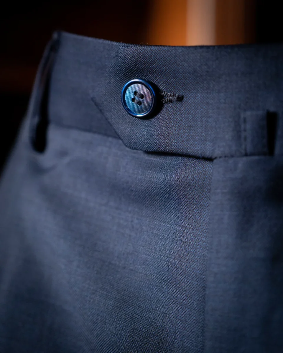 - Tessuto di Alta Qualità: Realizzato in un elegante tessuto blu medio, questo pantalone offre una vestibilità eccellente e una resistenza ideale per un uso frequente in contesti professionali.