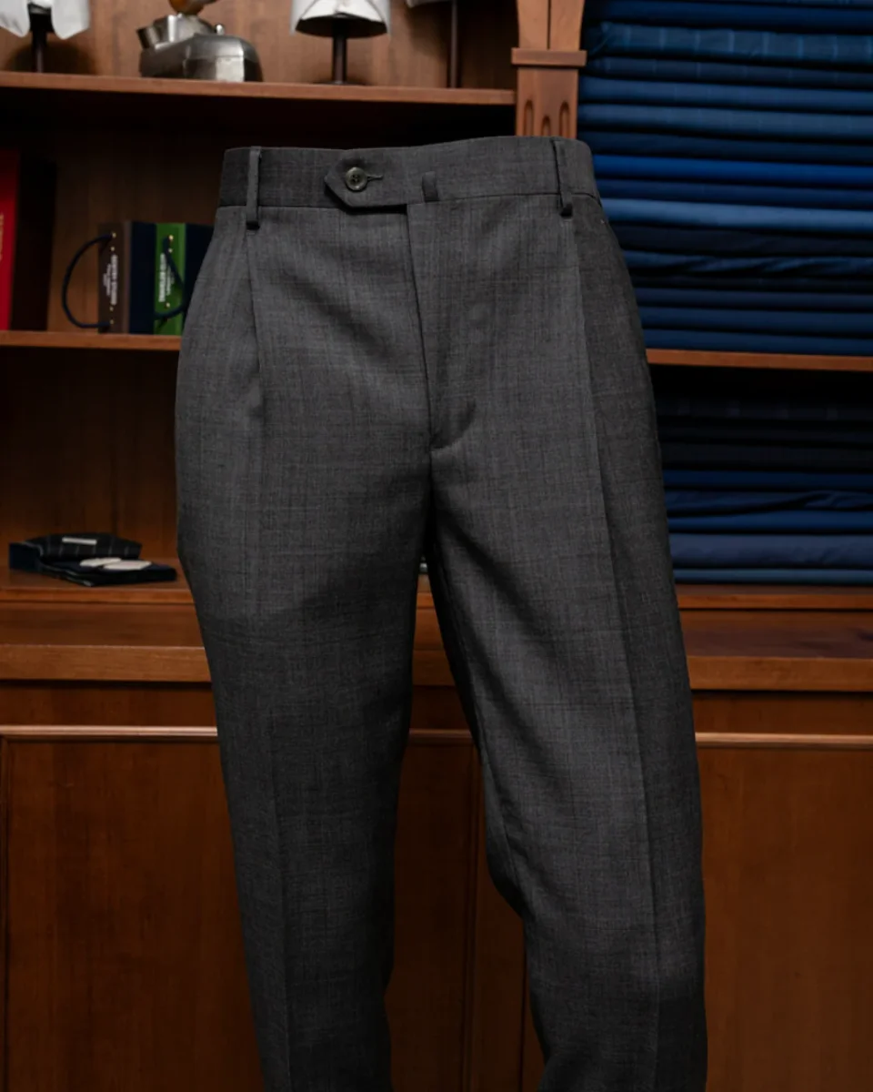- Due Pinces: Il pantalone presenta due pinces sulla parte anteriore, aggiungendo struttura e definizione alla vestibilità, per una silhouette elegante e professionale.