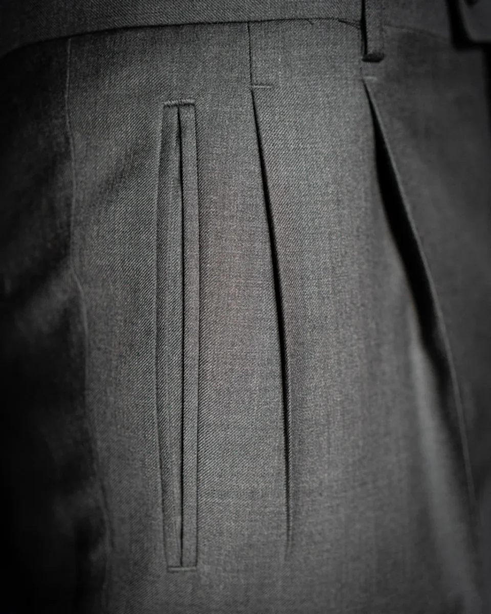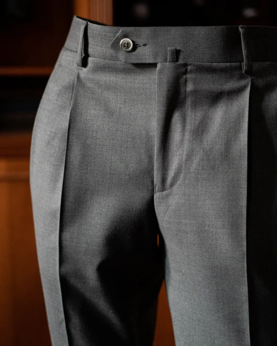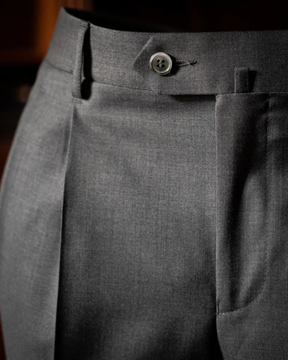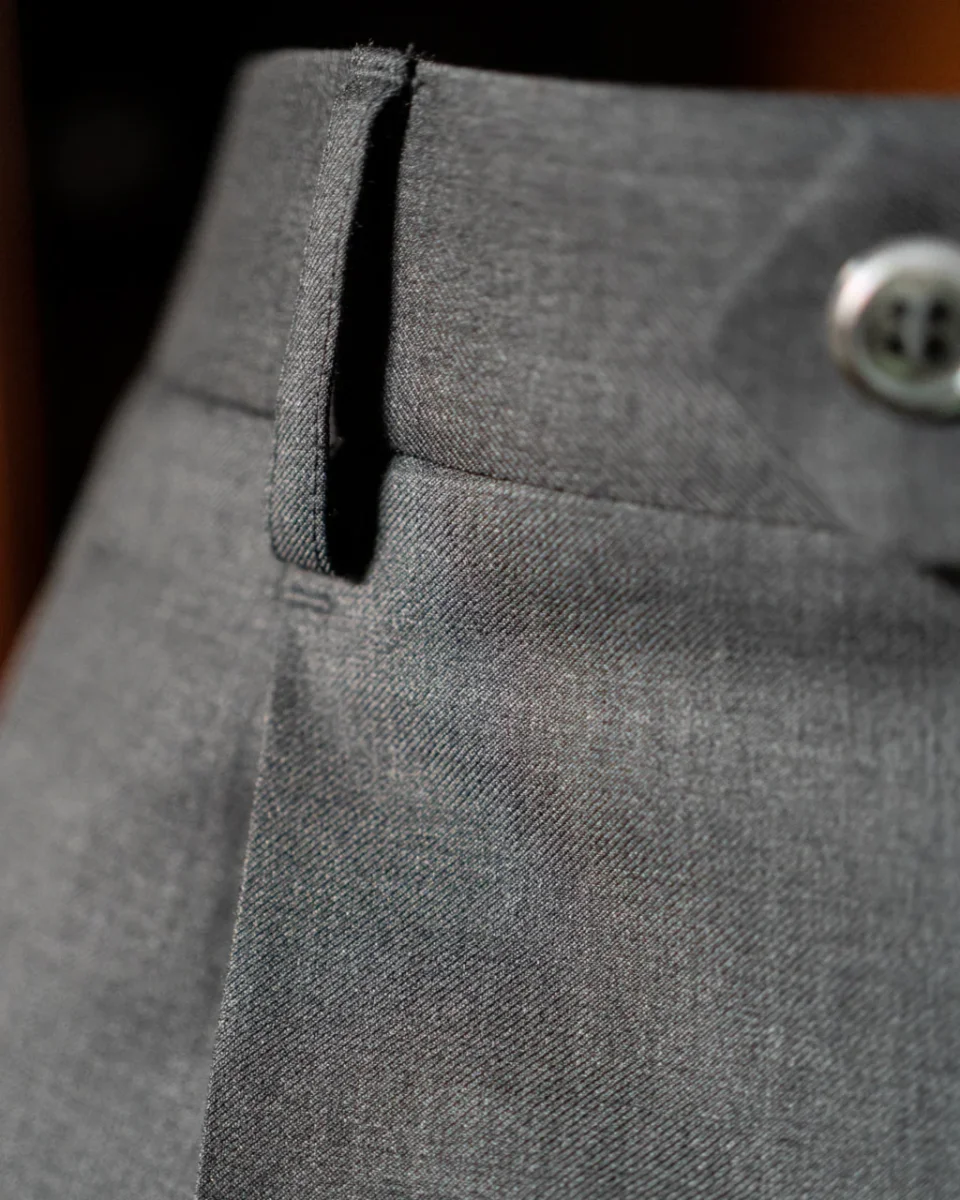 • Tessuto Grigio di Alta Qualità: Realizzato con un tessuto grigio di alta qualità, questo pantalone offre un aspetto sofisticato e moderno, perfetto per l’ambiente business.