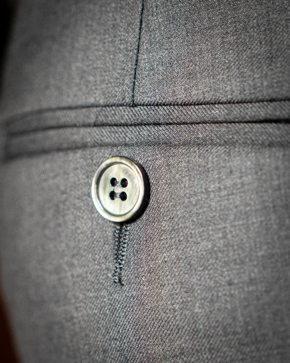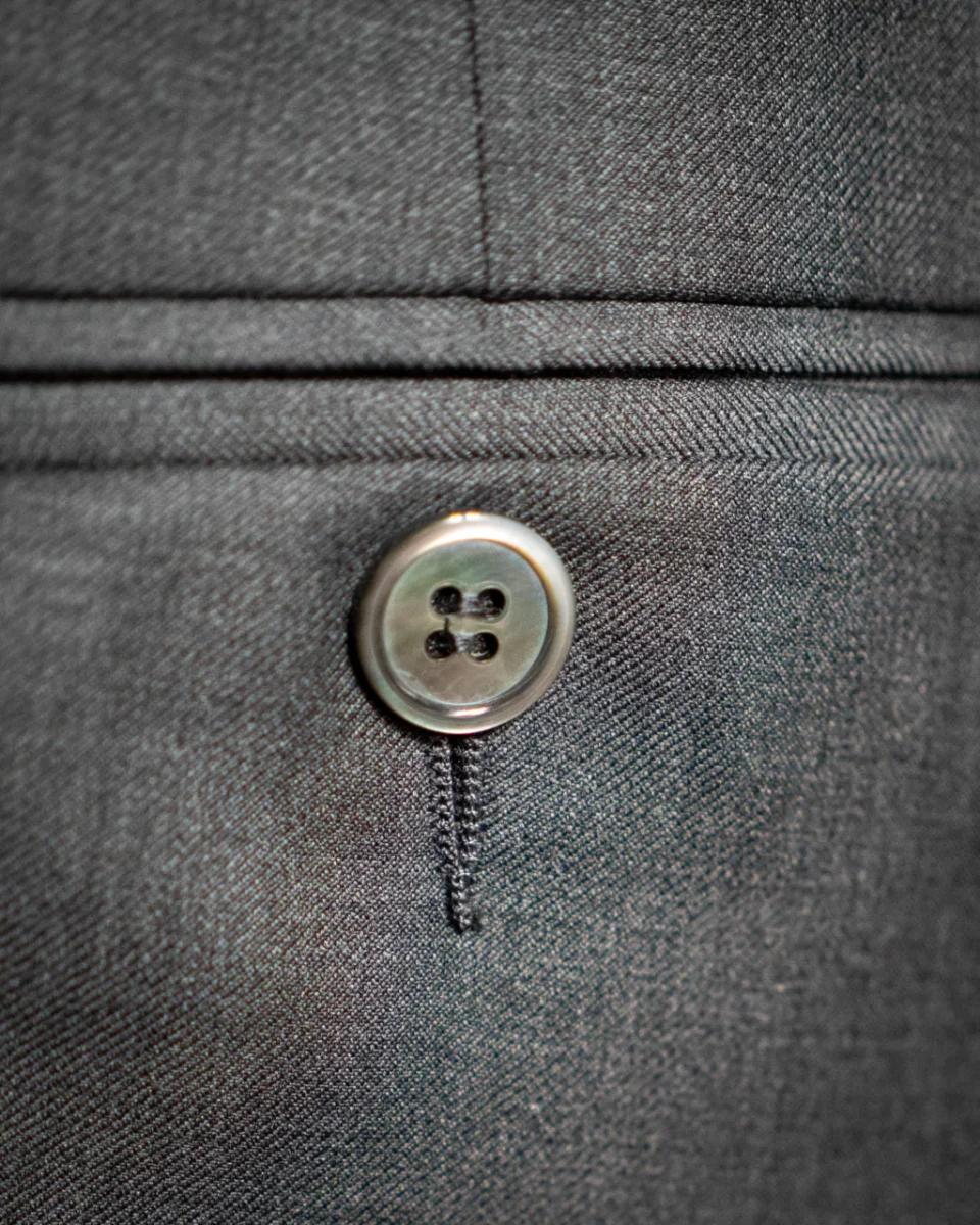 • Bottone Frontale in Madreperla: Il pantalone è dotato di un bottone frontale in madreperla, aggiungendo un tocco di lusso e distinzione, garantendo un dettaglio unico e sofisticato.