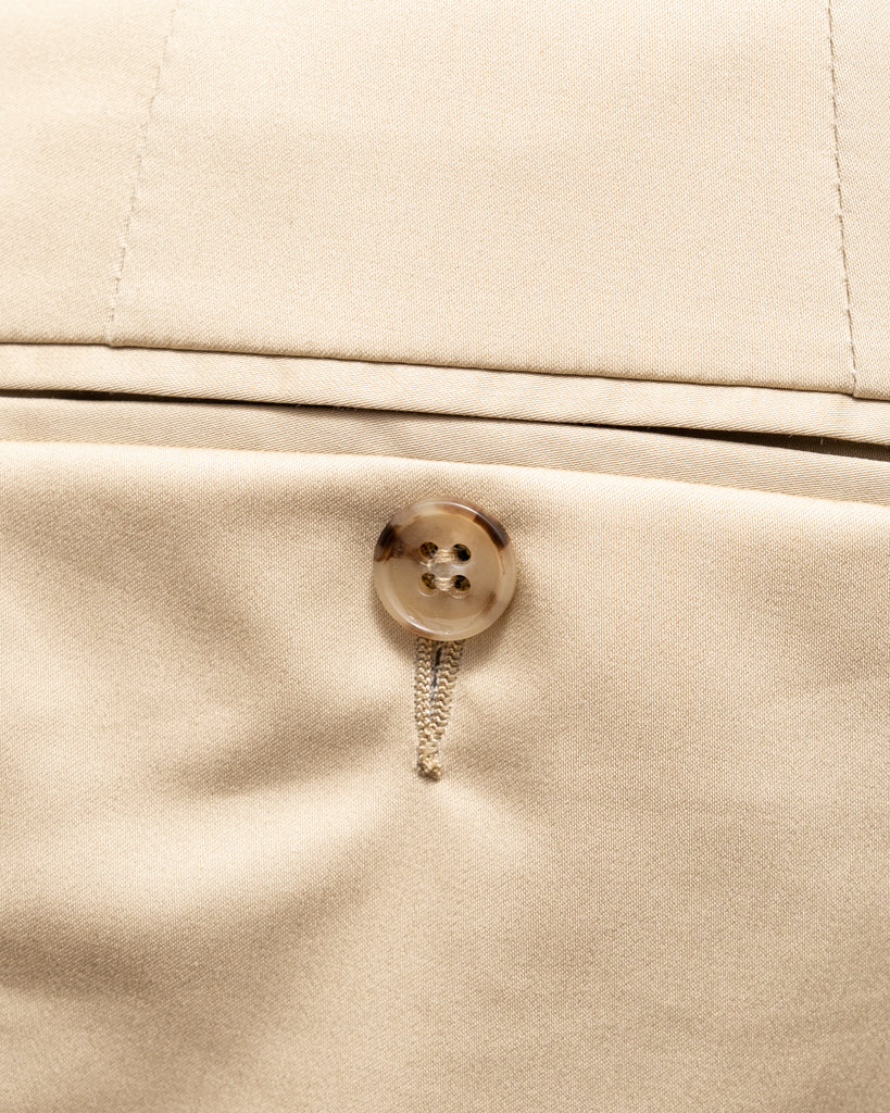 - Bottone Frontale in Madreperla: Il pantalone è impreziosito da un bottone frontale in madreperla, che conferisce un tocco di lusso e raffinatezza, rendendo il capo unico e distintivo.