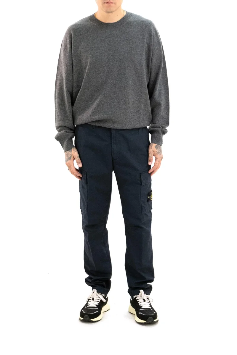 Pantaloni cargo in cotone stretch color blu Composizione: 97% cotone 3% elastan. MADE IN ALBANIA.