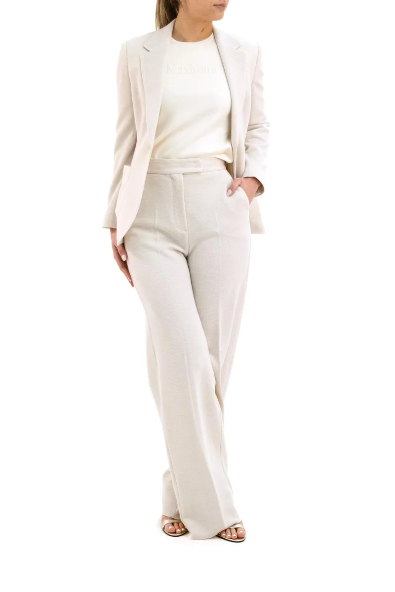Pantaloni in jersey piquet color avorio Composizione: 100% lana vergine.