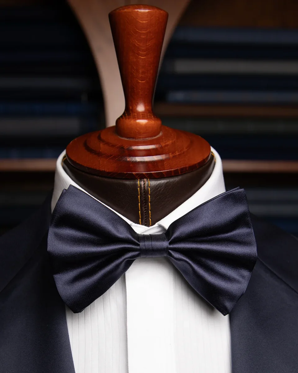 Dal design classico e versatile, questo papillon valorizza completi e smoking, conferendo stile e raffinatezza senza compromettere la sobrietà. La struttura regolabile garantisce sempre una vestibilità perfetta e confortevole.