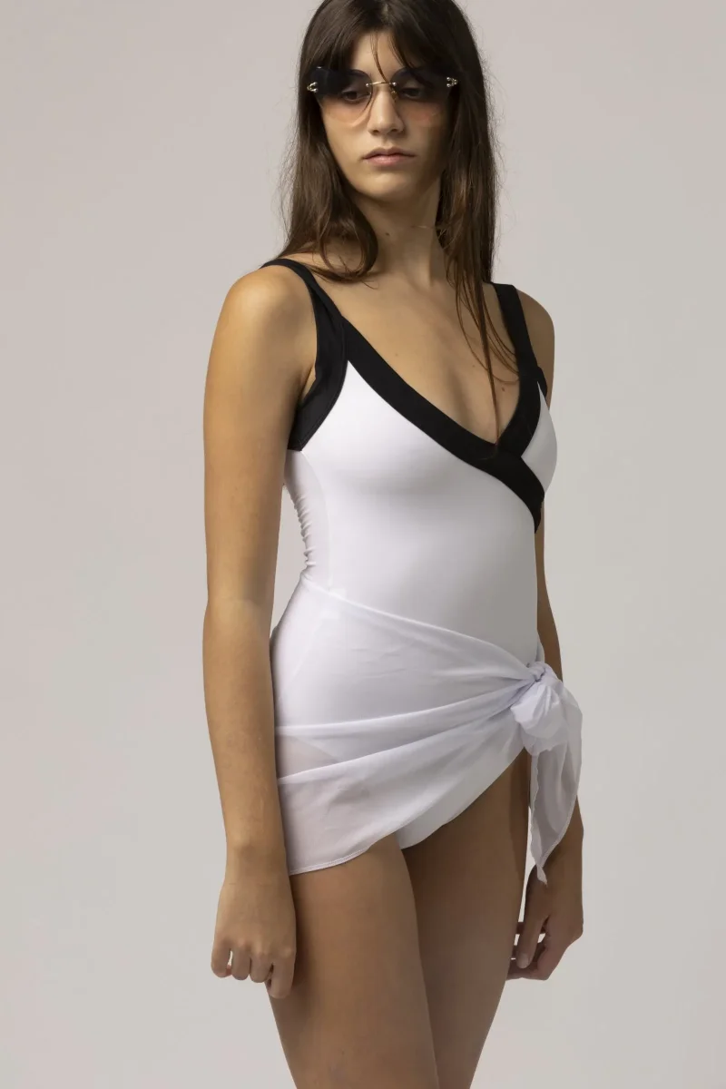 Costume mare con apertura su un lato. Laccetto che regola l’apertura.