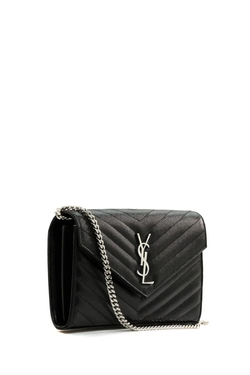 Pochette Cassandre Saint laurent Composizione: pelle in vitello, parti in metallo in ottone colore argento. Dimensioni: 22,5 X 14 X 4 cmLunghezza della catena: 48 cm. Made in Italy