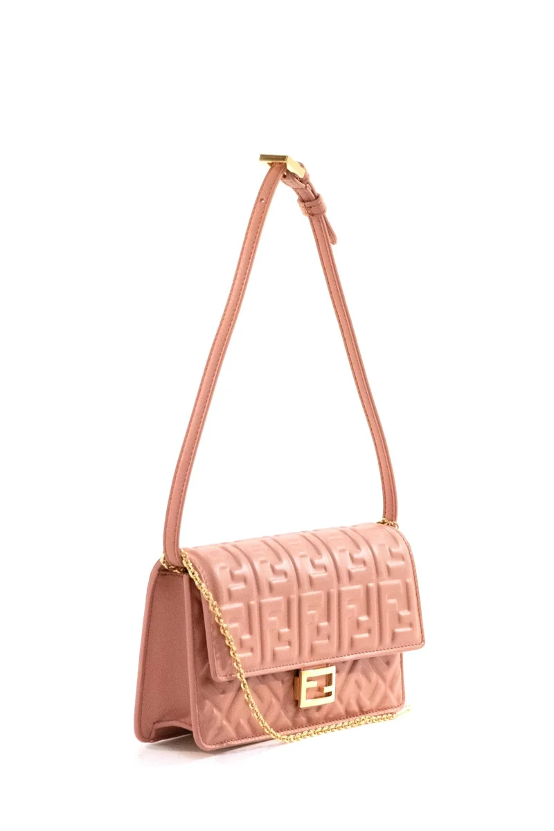 Portafoglio con catena Baguette in nappa FF color rosa Composizione: pelle. Dimensioni prodotto: 21 x 11,5 x 5 cm. MADE IN ITALY.