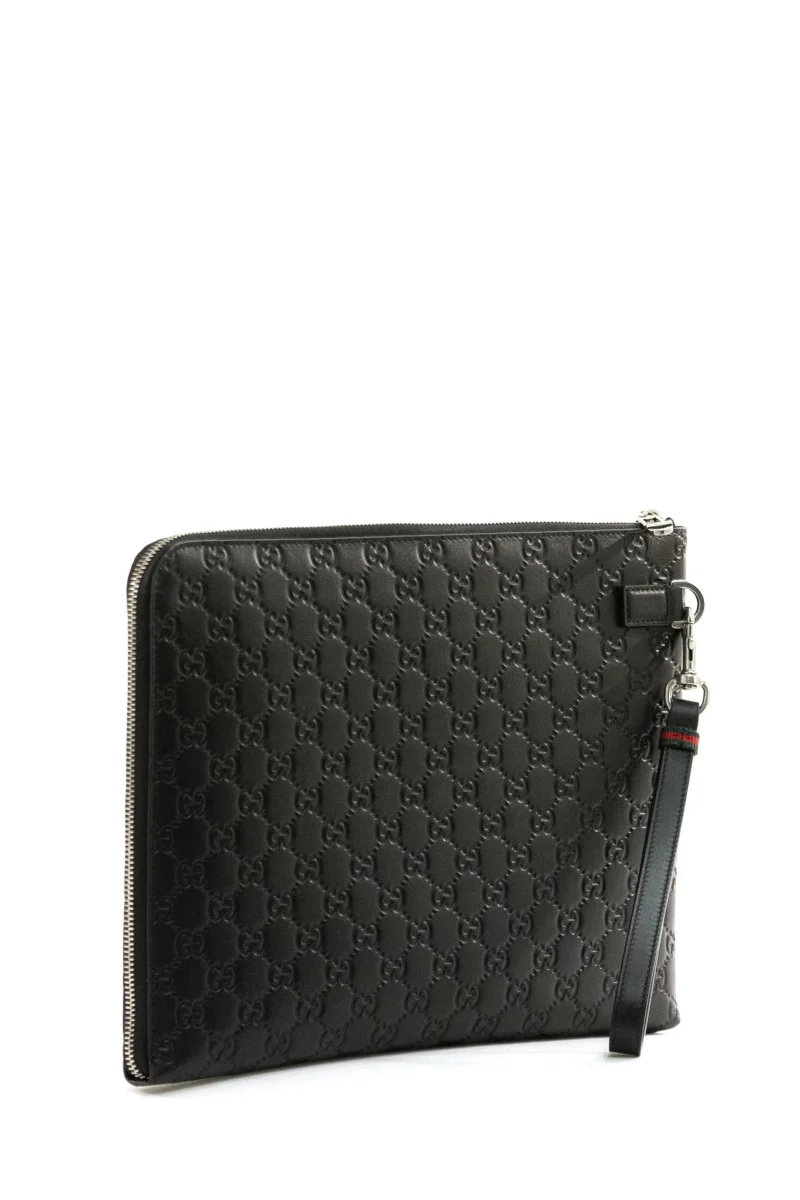 Pouch GG Emblem in Pelle Composizione: 100% pelle di vitello. Prodotto in Italia. Misure: larghezza 34 cm x altezza 26 cm x profondità 2,5 cm