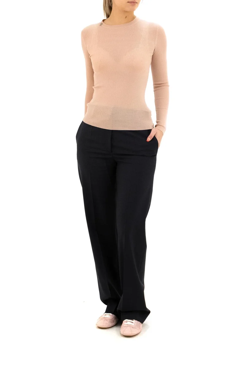 Pullover in lana vergine a coste color rosa cipria Composizione: 100% lana vergine. MADE IN ITALY.
