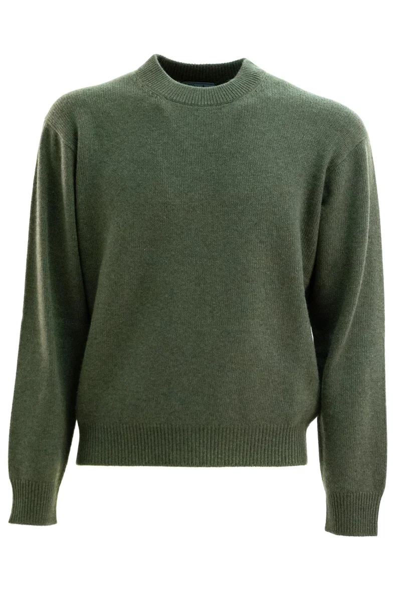 Pullover in Re-Cashmere color verde militare Composizione: 100% cashmere riciclato. MADE IN ITALY.
