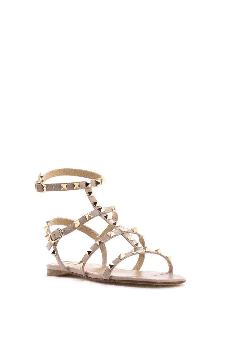 Sandali Flat Rockstud in pelle liscia color rosa cipria Composizione: pelle. Altezza tacco: 100 mm. MADE IN ITALY.