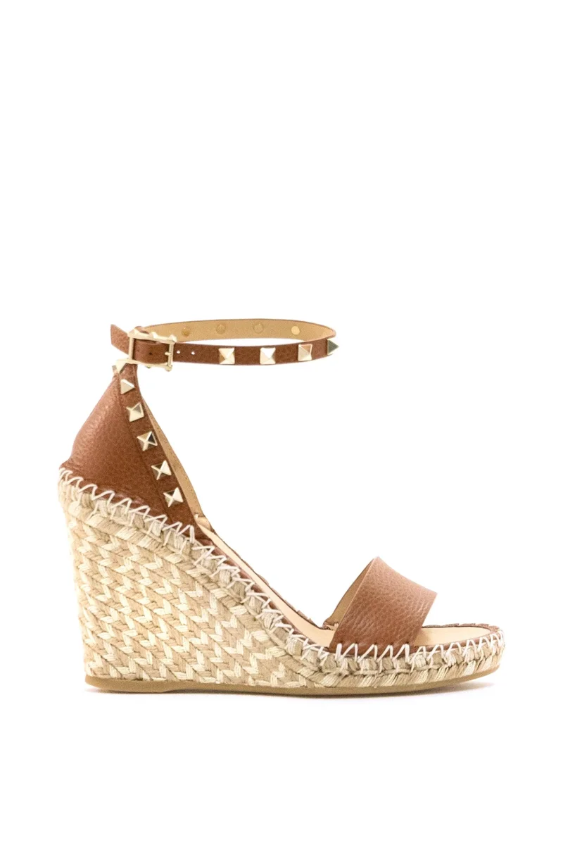 Sandali Zeppa Rockstud in pelle martellata color marrone Composizione: pelle. Altezza tacco: 100 mm. MADE IN ITALY.