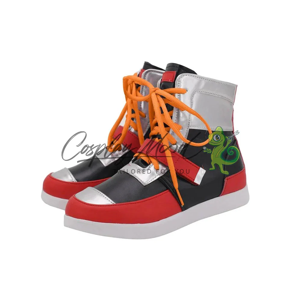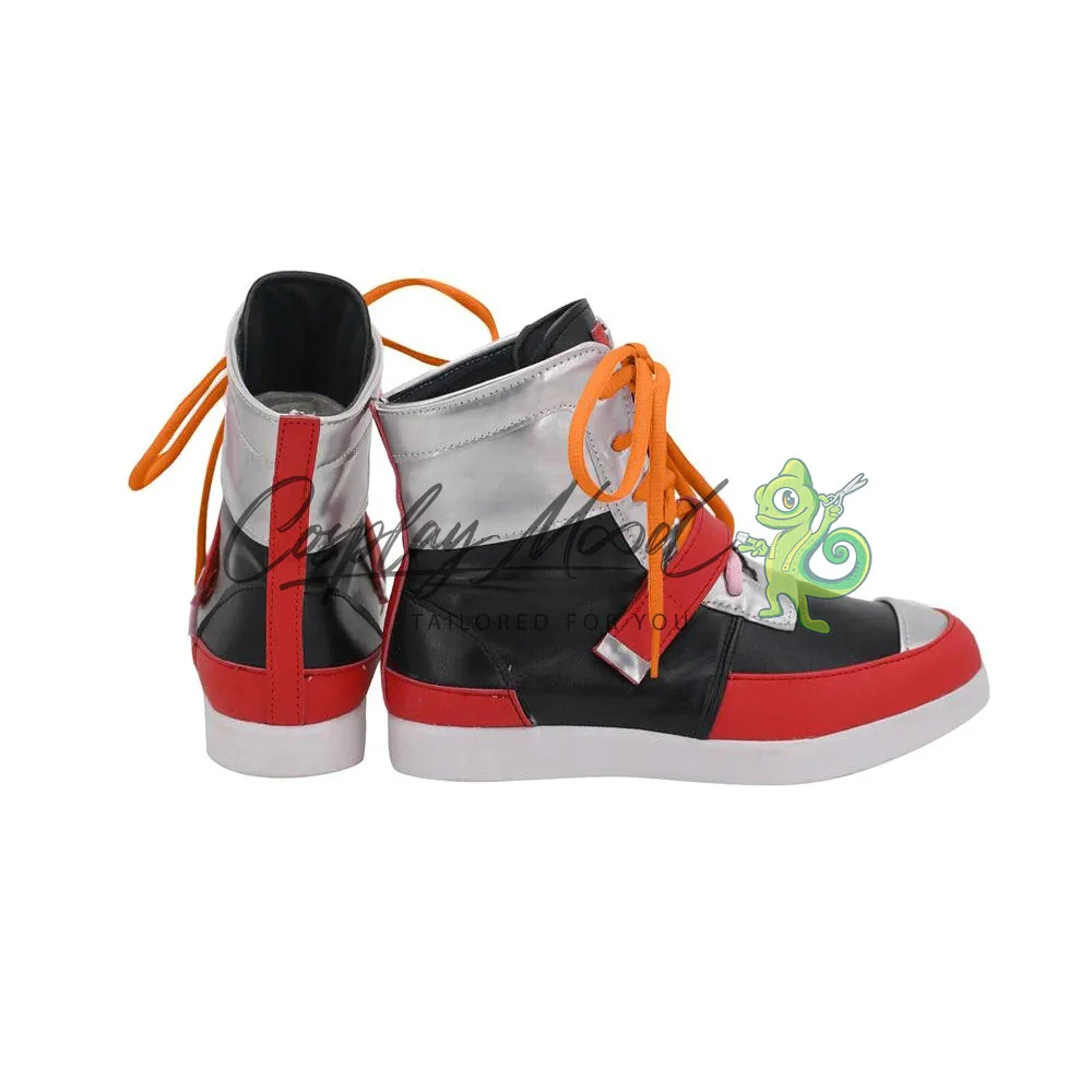 Le scarpe sono lavorate in pelle PU ed impreziosite con dettagli tipici del personaggio in questione. Questo tipo di calzature sono resistenti ad urti e strappi ed appariranno come da immagine: un paio di scarpe con base nera e suola bianca con parte sovrastante di colore rosso, la punta e la parte del fronte e laterale sono argentate, mentre il rosso è ripreso anche nello strappo e nella piccola decorazione sulla linguetta. Completano le stringhe color arancio.
