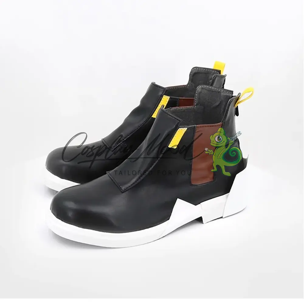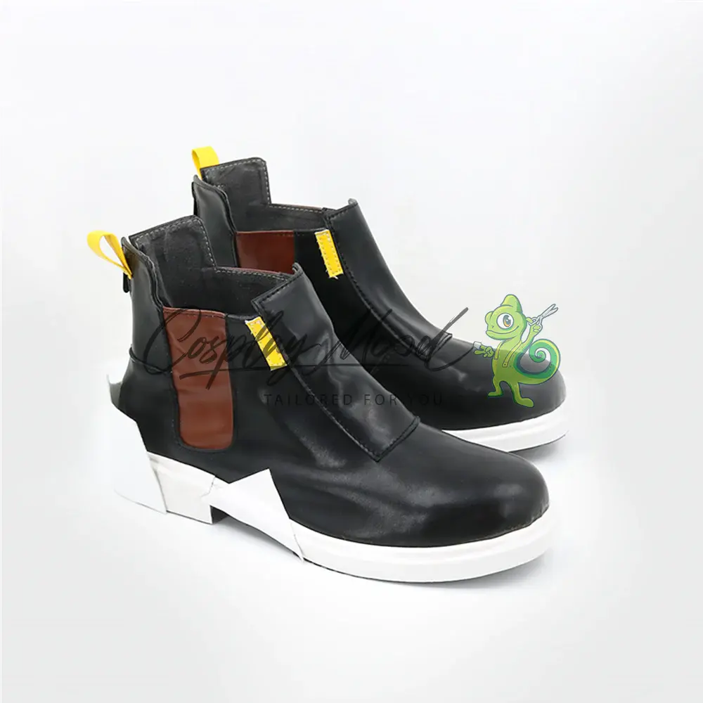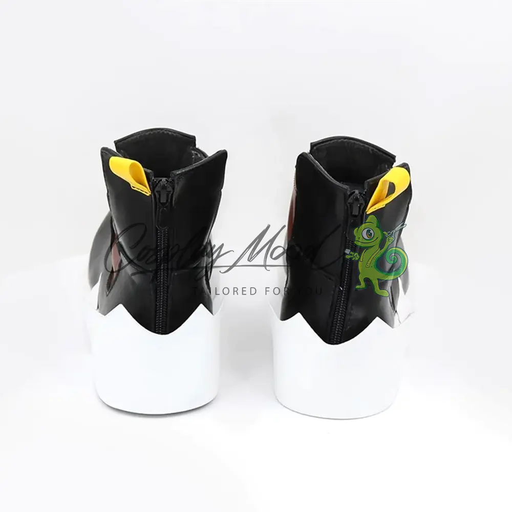 Queste scarpe cosplay sono realizzate in pelle PU e lavorate con dettagli tipici del personaggio in questione. Questo tipo di calzature sono resistenti ad urti e strappi ed appariranno come da immagine: un paio di scarpe nere con suola e tacchetto bordati di bianco, davanti sono presenti due strisce gialle e lateralmente due marroni. Sul retro si trova una linguetta gialla posta nella parte alta e la zona superiore della suola bianca che sporge posteriormente.