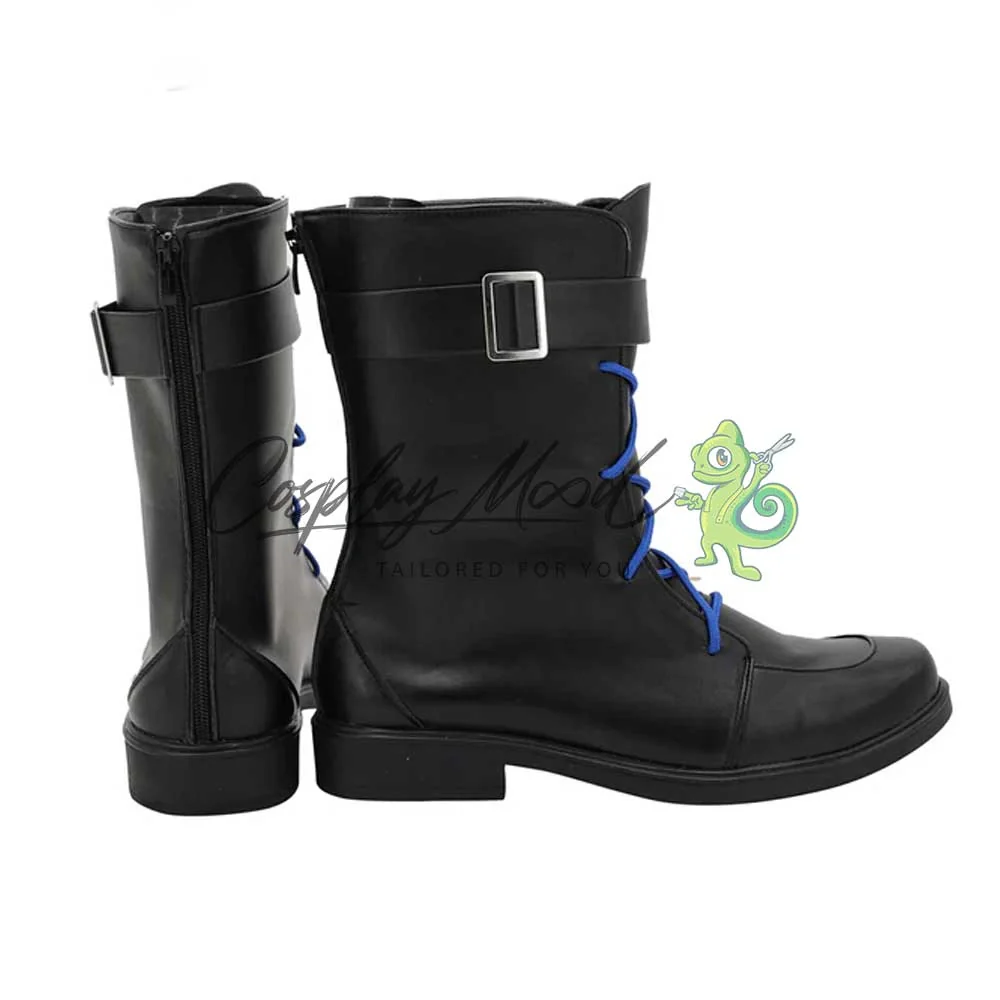 Tutte le nostre calzature sono realizzate in pelle PU e lavorate con dettagli tipici del personaggio in questione. Questo materiale le rende resistenti ad urti e strappi ed appariranno come da immagine: un paio di stivaletti neri con stringhe blu notte e una cinghietta nera nella parte alta. Le nostre calzature cosplay sono fatte su ordinazione, quando il laboratorio finisce di realizzarle verranno spedite immediatamente. Potrebbe accadere che alcuni tipi di scarpe o stivali all’inizio possano emanare un forte odore che per alcune persone potrebbe risultare alquanto sgradevole. Questa cosa si risolverà facilmente mettendo le scarpe o gli stivali in un luogo areato per una notte o al massimo per qualche giorno.