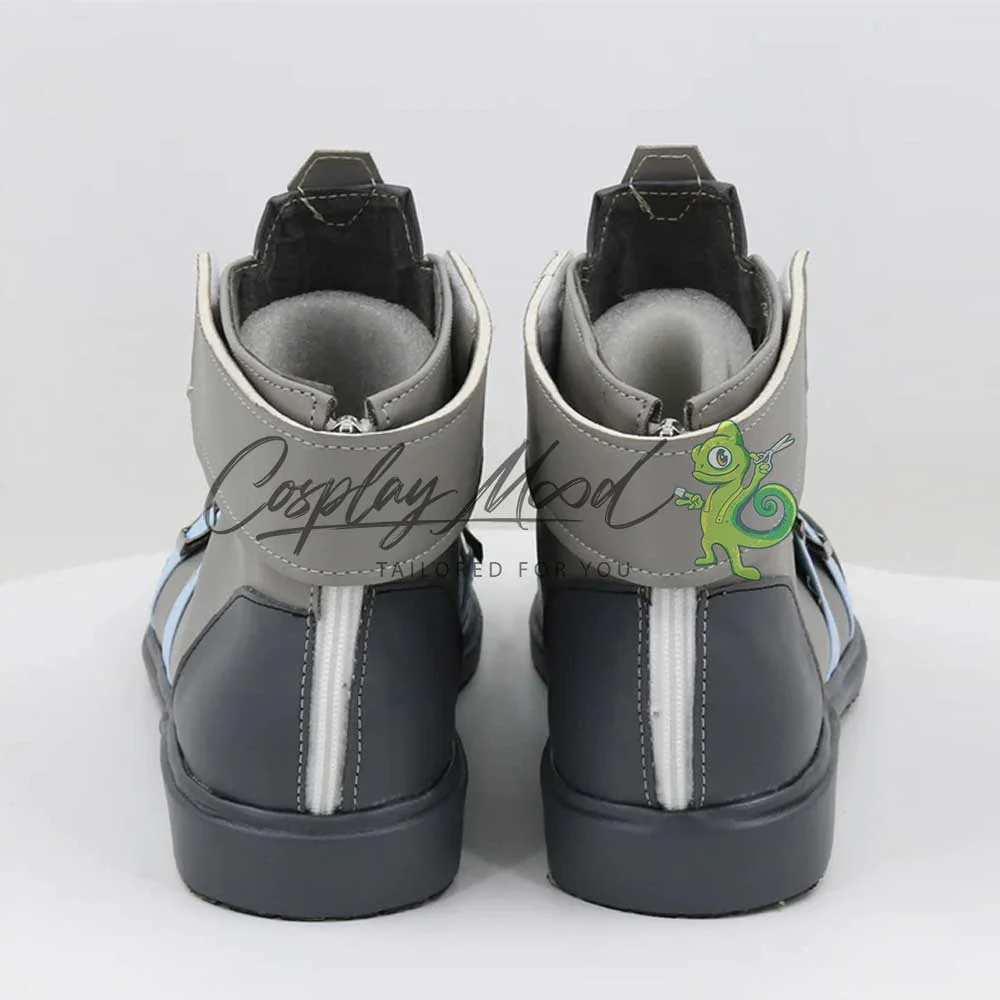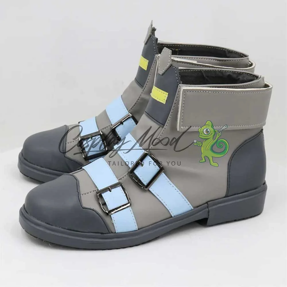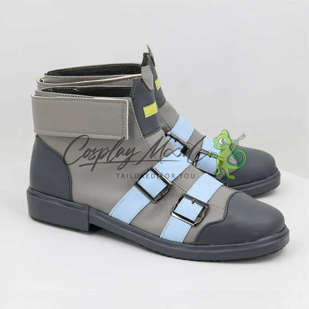 Queste scarpe sono realizzate in pelle PU e lavorate con dettagli tipici del personaggio in questione. Questo tipo di calzature risultano resistenti ad urti e strappi ed appariranno come da immagine: un paio di scarpe grigio caldo con punta e fronte grigio freddo, così come il tallone e la bordatura di suola e tacchetto. Sulla parte anteriore sono presenti due cinghie azzurro cielo e all’altezza della linguetta una riga gialla. Completano le calzature due bande laterali grigio caldo. Le nostre calzature sono fatte su ordinazione, quando il laboratorio finisce di realizzarle verranno immediatamente spedite. Qualche volta potrebbe accadere che alcuni tipi di scarpe o stivali possano inizialmente avere un forte odore che per alcune persone potrebbe risultare alquanto sgradevole. Questa cosa si risolverà facilmente mettendo le scarpe o gli stivali in un luogo areato per una notte o al massimo per qualche giorno.