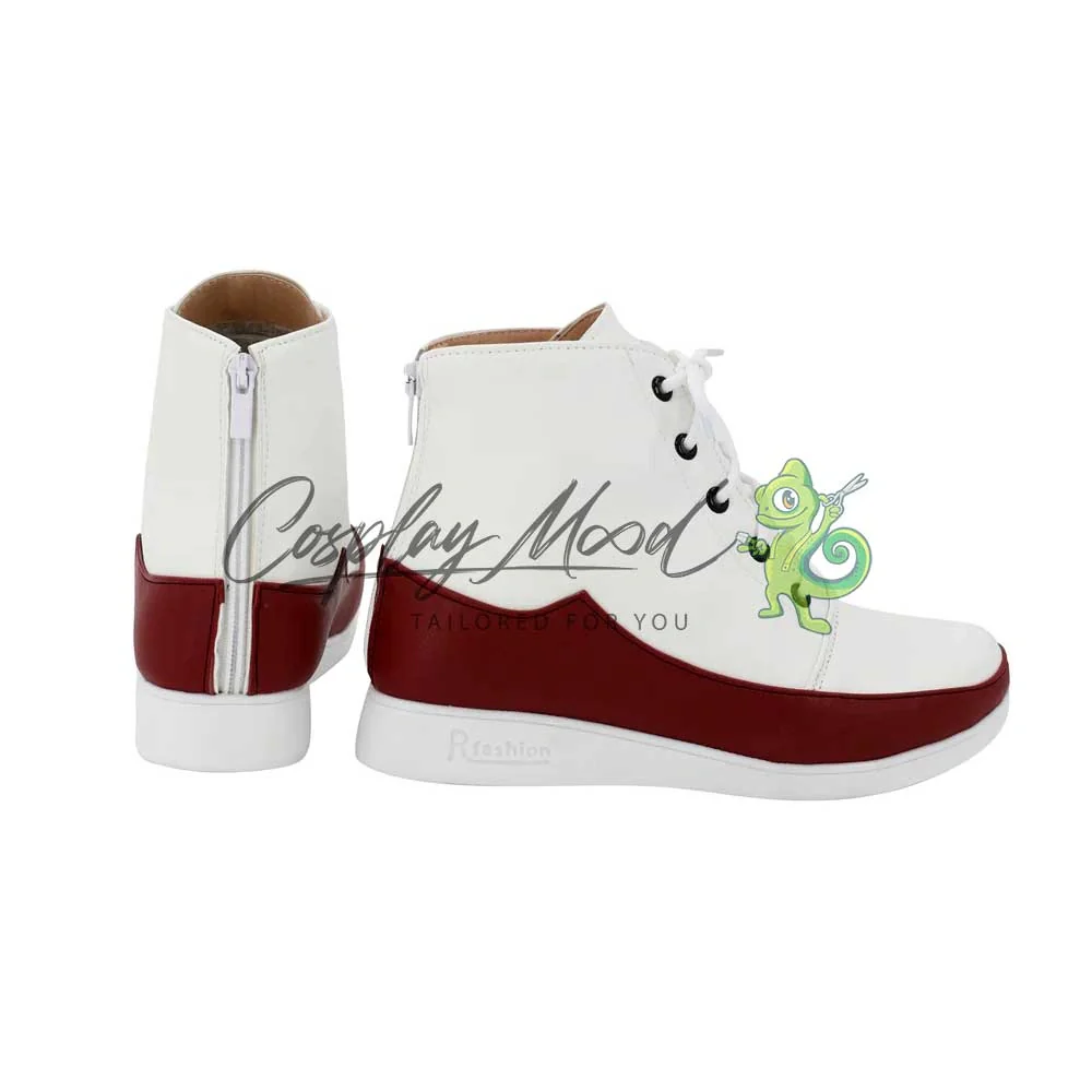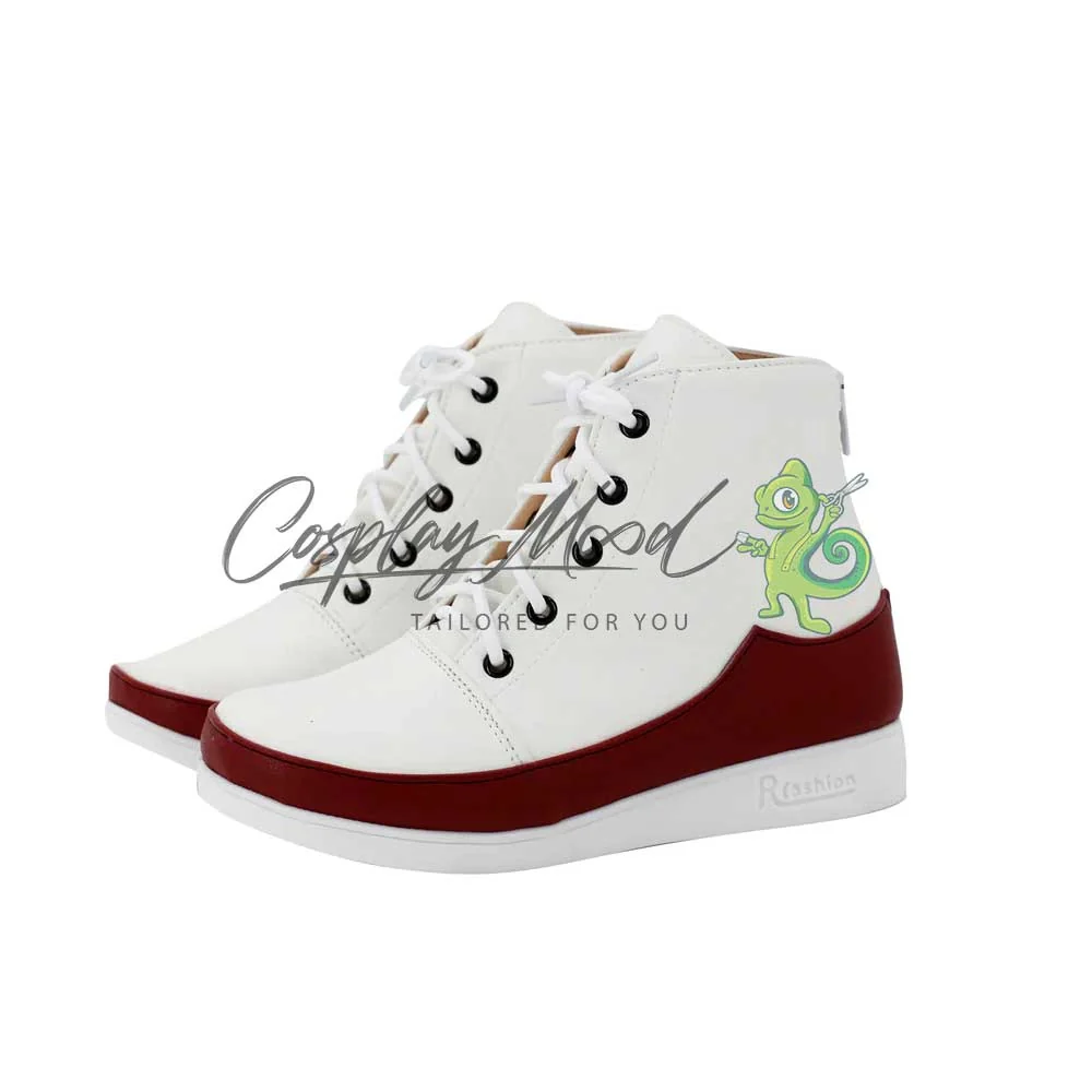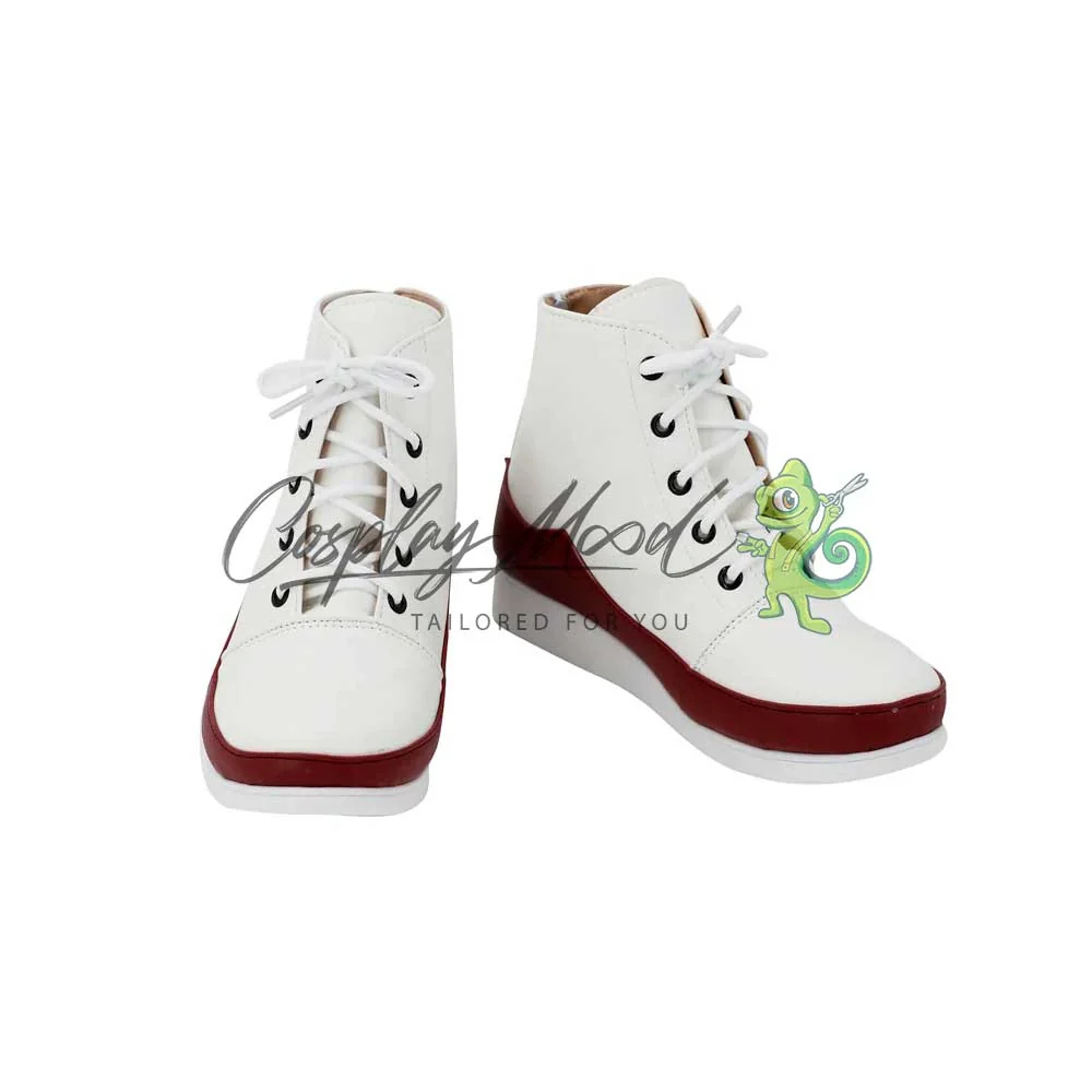 Come è possibile vedere dalle immagini, le scarpe cosplay sono realizzate in pelle PU e lavorate con dettagli tipici del personaggio in questione. Questo tipo di calzature cosplay sono resistenti ad urti e strappi ed appariranno come da immagine: un paio di scarpe bianche con stringhe in coordinato e decorazione color rosso cardinale sopra la suola.