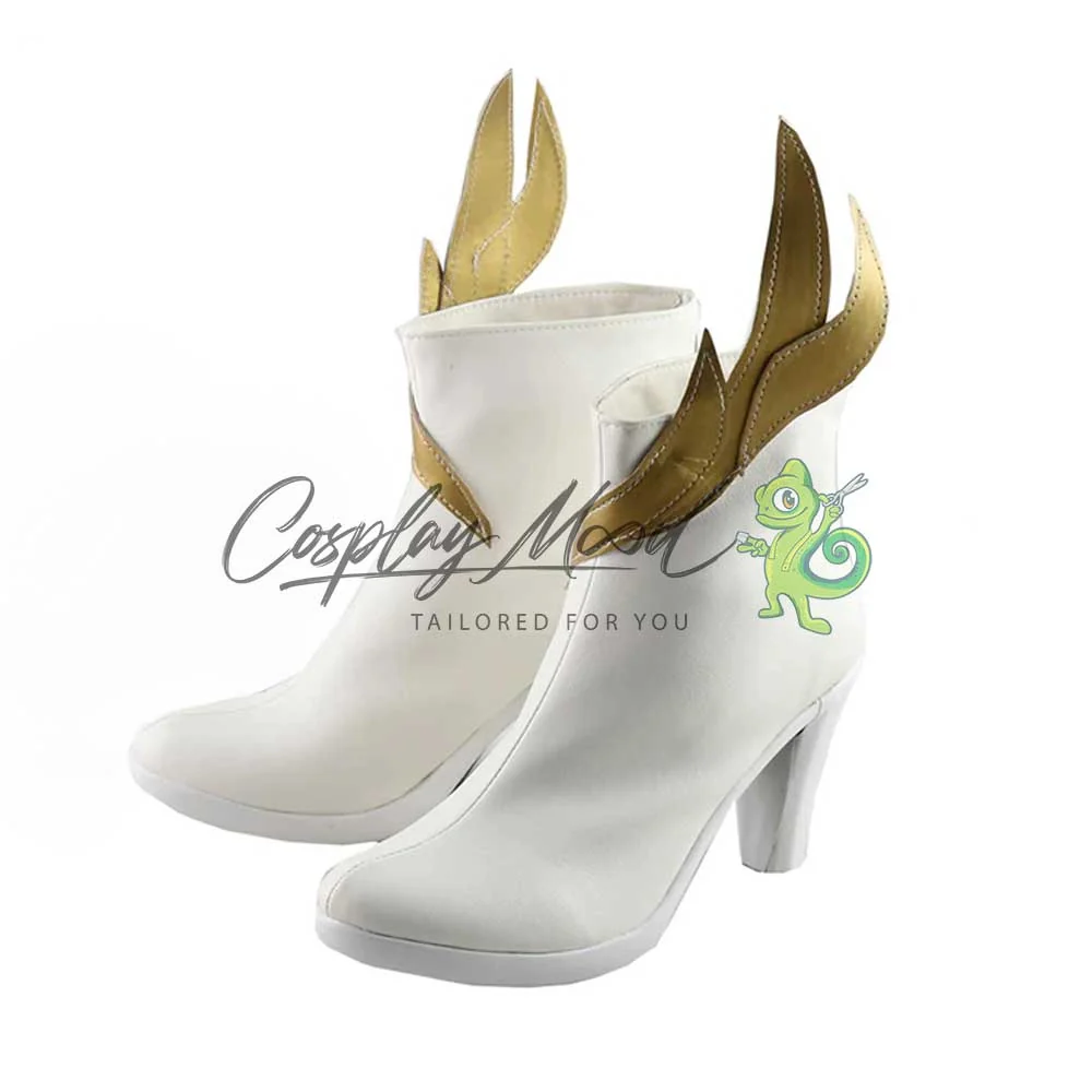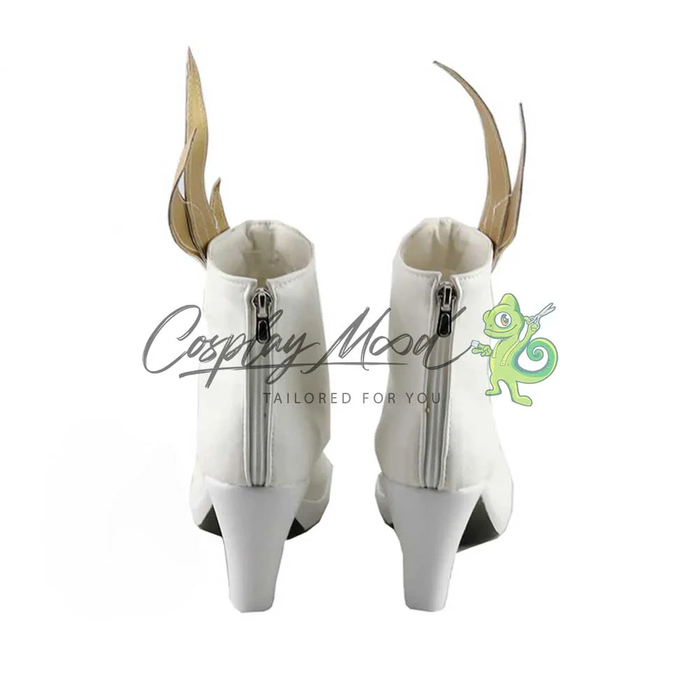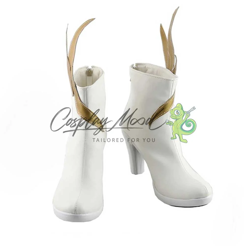 Le scarpe sono realizzate in pelle PU, un materiale bello esteticamente e molto resistente e come puoi vedere dalle immagini queste si compongono di: una base bianca con decorazioni dorate a forma di ala nella parte superiore. Le calzature cosplay sono fatte su ordinazione, quando il laboratorio cosplay finisce di realizzarle verranno spedite immediatamente. Potrebbe accadere che alcuni tipi di scarpe o stivali all’inizio possano avere un forte odore che per alcune persone potrebbe risultare sgradevole. Questa cosa si risolverà facilmente mettendo le scarpe o gli stivali in un luogo areato per qualche giorno.