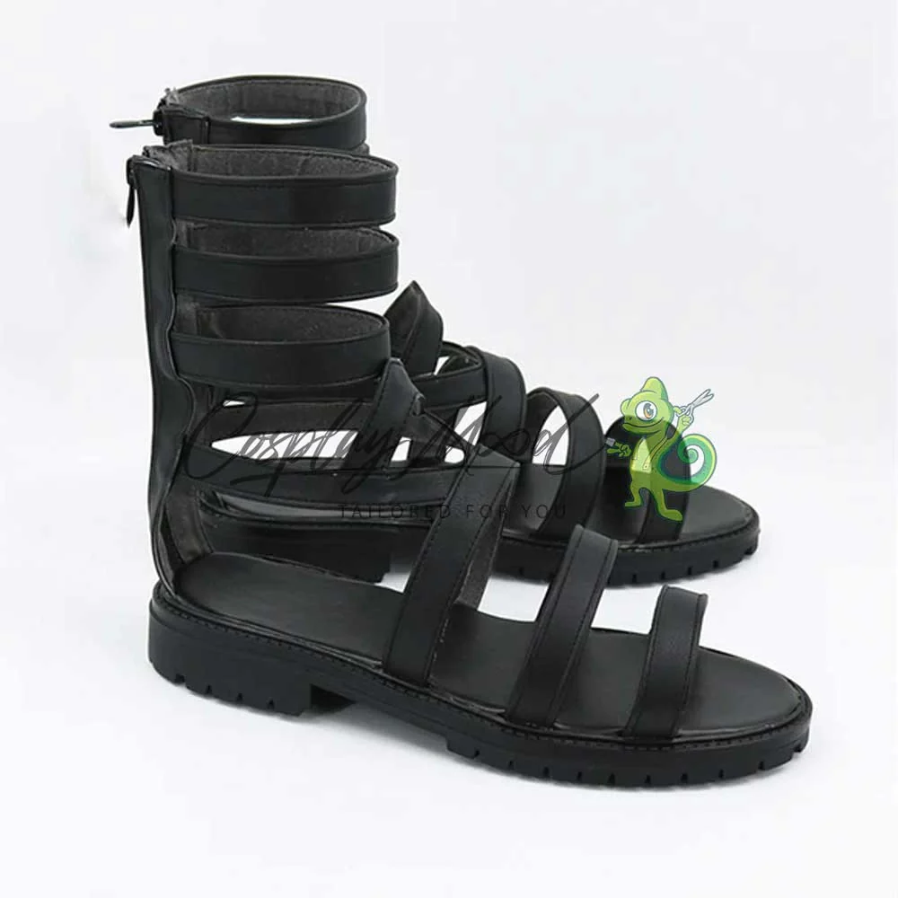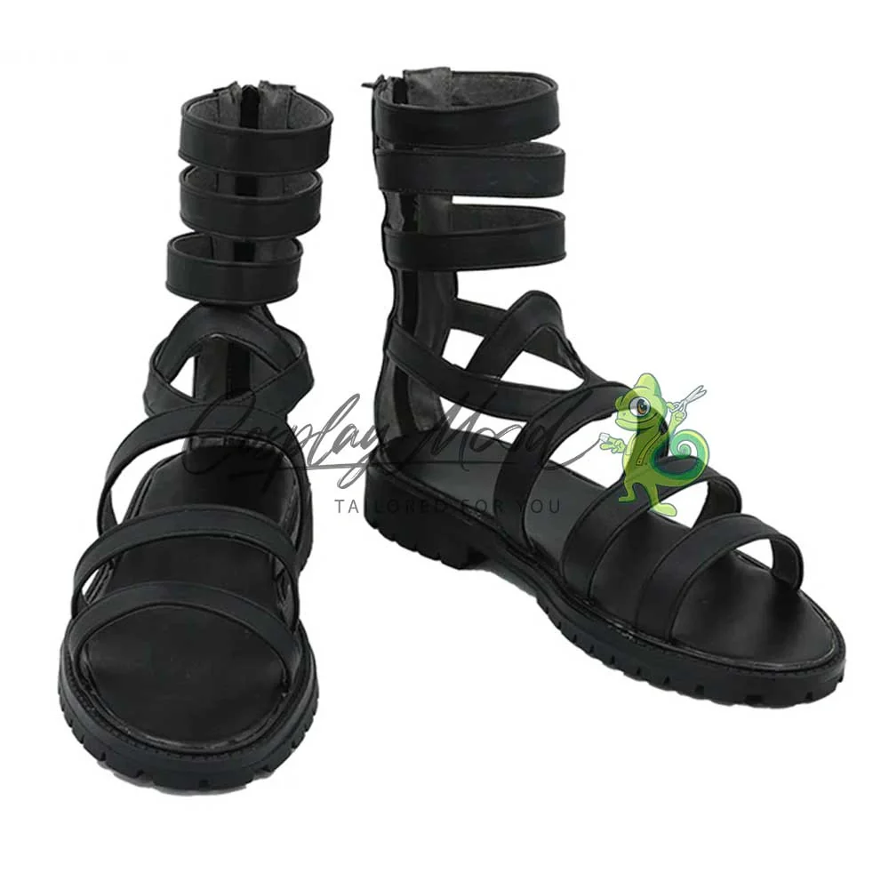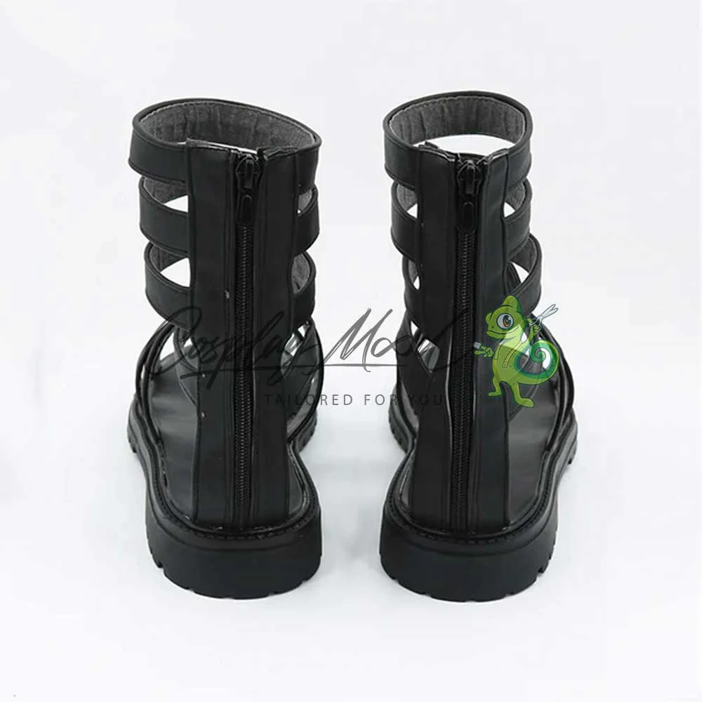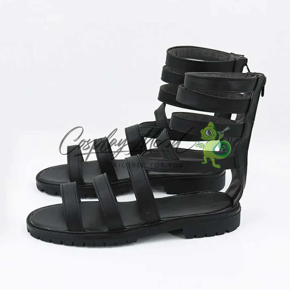 Come è possibile vedere dalle immagini, le scarpe cosplay sono realizzate in pelle PU e lavorate con dettagli tipici del personaggio in questione. Questo tipo di calzature cosplay sono resistenti ad urti e strappi ed appariranno come da immagine: un paio di sandali neri aperti con cinturini che si arrampicano fino a parte dello stinco. Le nostre calzature cosplay sono fatte su ordinazione, quando il laboratorio finisce di realizzarle verranno spedite immediatamente. Potrebbe accadere che alcuni tipi di scarpe o stivali all’inizio possano emanare un forte odore che per alcune persone potrebbe risultare alquanto sgradevole. Questa cosa si risolverà facilmente mettendo le scarpe o gli stivali in un luogo areato per una notte o al massimo per qualche giorno.