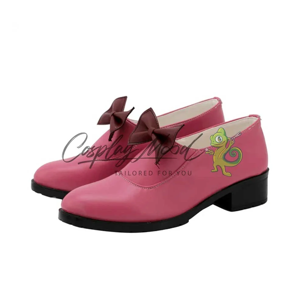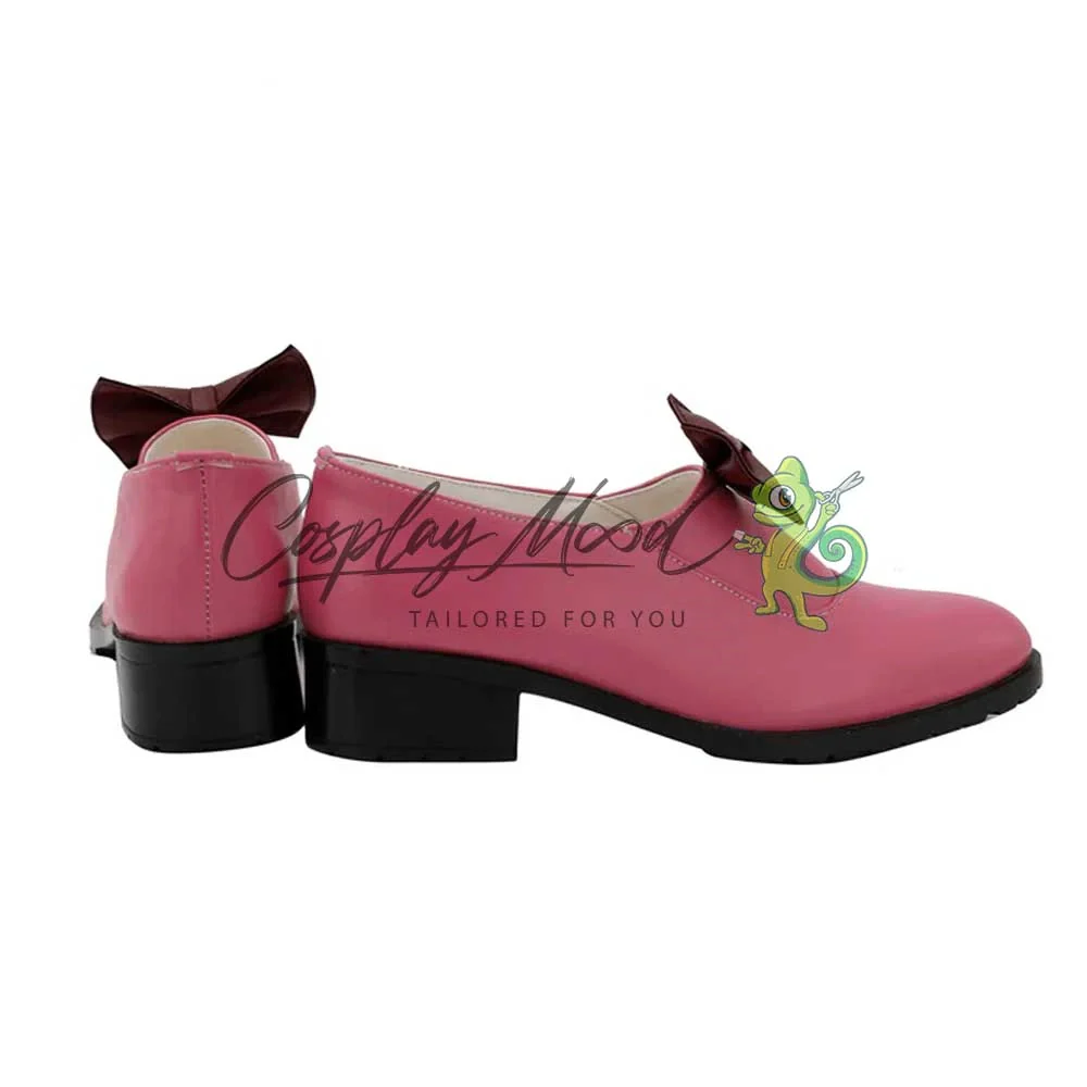 Le scarpe sono realizzate in pelle PU e lavorate con dettagli tipici del personaggio in questione. Questo tipo di calzature sono resistenti ad urti e strappi ed appariranno come da immagine: un paio di scarpe rosa scuro con un fiocco color marrone sul fronte, mentre tacco e suola appariranno di color nero. Le nostre calzature cosplay sono fatte su ordinazione, quando il laboratorio finisce di realizzarle verranno spedite immediatamente. Potrebbe accadere che alcuni tipi di scarpe o stivali all’inizio possano emanare un forte odore che per alcune persone potrebbe risultare alquanto sgradevole. Questa cosa si risolverà facilmente mettendo le scarpe o gli stivali in un luogo areato per una notte o al massimo per qualche giorno.