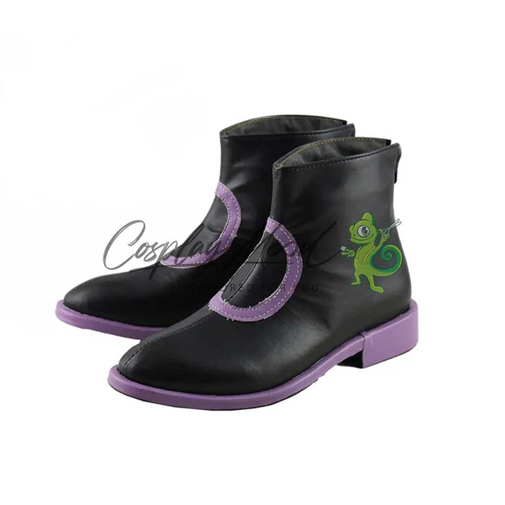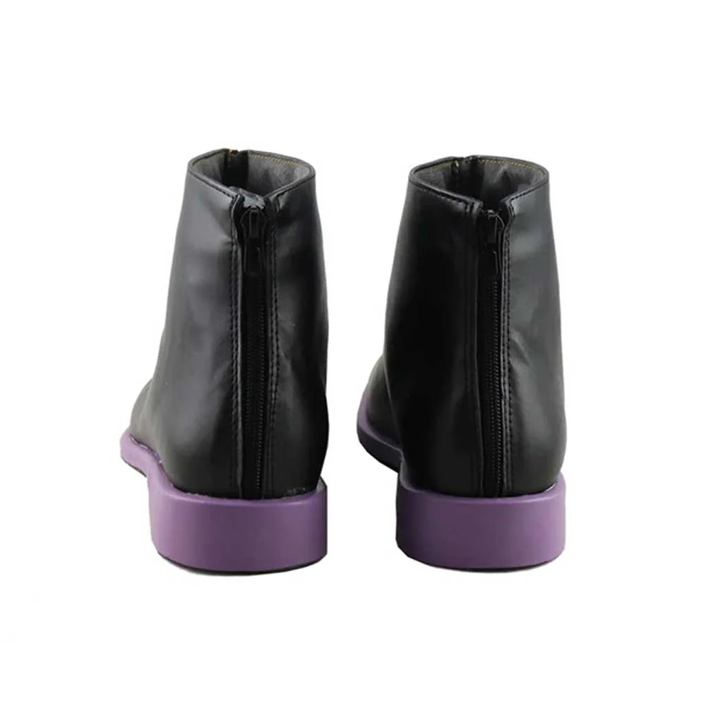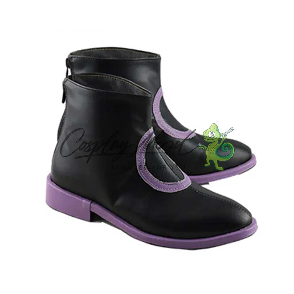 Le scarpe sono realizzate in pelle PU e lavorate con dettagli tipici del personaggio in questione. Questo tipo di calzature sono resistenti ad urti e strappi ed appariranno come da immagine: un paio di scarpe nere con un disegno circolare al centro di colore viola, stesso colore della suola. Le nostre calzature cosplay sono fatte su ordinazione, quando il laboratorio finisce di realizzarle verranno spedite immediatamente. Potrebbe accadere che alcuni tipi di scarpe o stivali all’inizio possano emanare un forte odore che per alcune persone potrebbe risultare alquanto sgradevole. Questa cosa si risolverà facilmente mettendo le scarpe o gli stivali in un luogo areato per una notte o al massimo per qualche giorno.