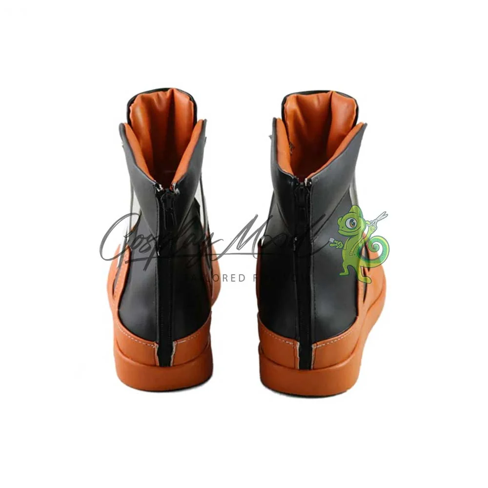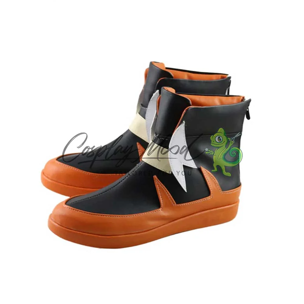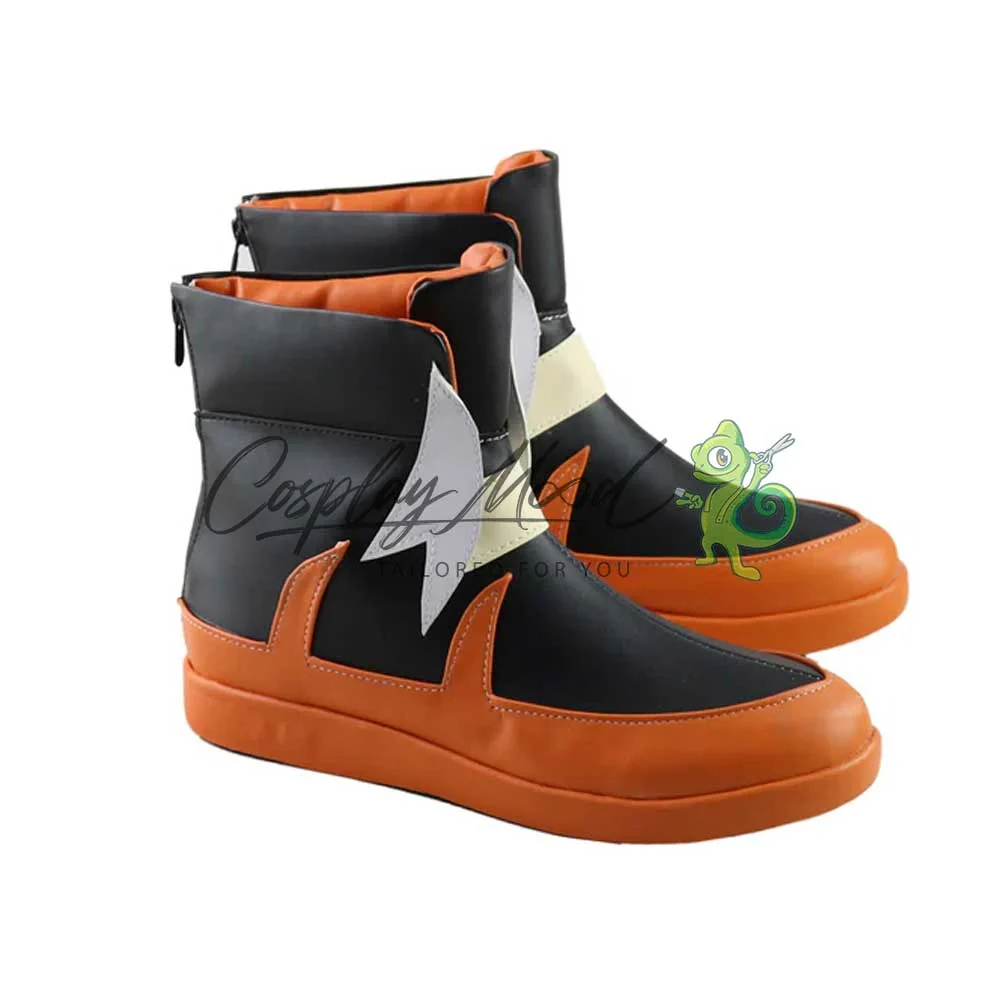 Tutte le nostre calzature sono realizzate in pelle PU e lavorate con dettagli tipici del personaggio in questione. Questo materiale le rende resistenti ad urti e strappi ed appariranno come da immagine: un paio di scarpe nere con interno, suola e rispettive decorazioni di colore arancione. Sul fronte spiccano rifiniture bianche e color crema. Le nostre calzature cosplay sono fatte su ordinazione, quando il laboratorio finisce di realizzarle verranno spedite immediatamente. Potrebbe accadere che alcuni tipi di scarpe o stivali all’inizio possano emanare un forte odore che per alcune persone potrebbe risultare alquanto sgradevole. Questa cosa si risolverà facilmente mettendo le scarpe o gli stivali in un luogo areato per una notte o al massimo per qualche giorno.