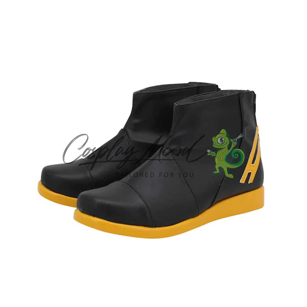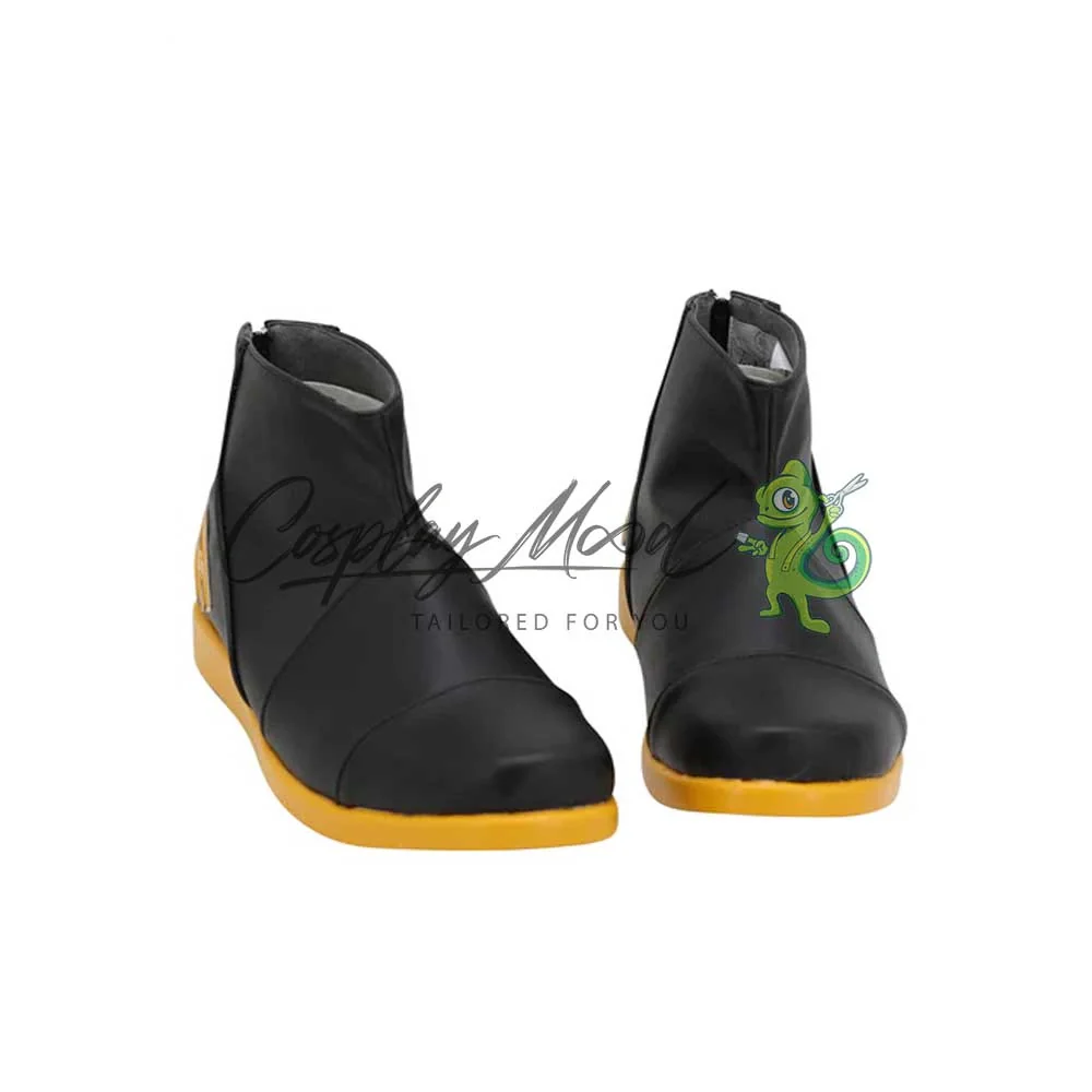 Tutte le nostre calzature sono realizzate in pelle PU e lavorate con dettagli tipici del personaggio in questione. Questo materiale le rende resistenti ad urti e strappi ed appariranno come da immagine: un paio di scarpe nere con decorazioni dorate sul retro e suola dello stesso colore. Le nostre calzature cosplay sono fatte su ordinazione, quando il laboratorio finisce di realizzarle verranno spedite immediatamente. Potrebbe accadere che alcuni tipi di scarpe o stivali all’inizio possano emanare un forte odore che per alcune persone potrebbe risultare alquanto sgradevole. Questa cosa si risolverà facilmente mettendo le scarpe o gli stivali in un luogo areato per una notte o al massimo per qualche giorno.