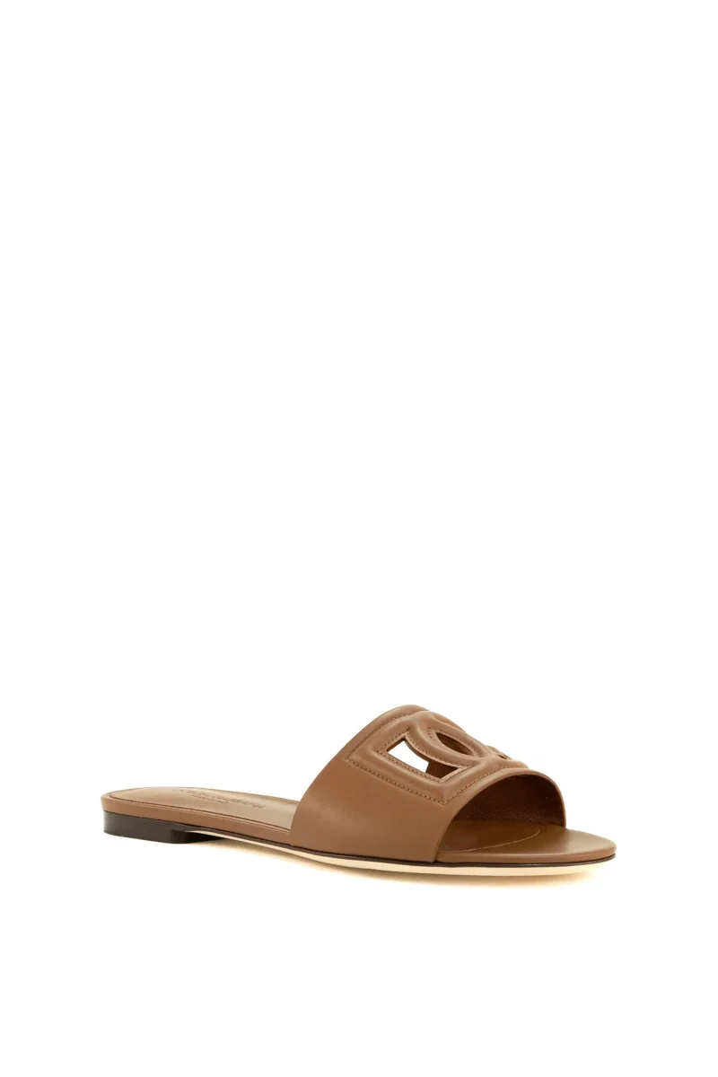 Slide con Logo DG Composizione: 100% pelle di vitello, interno in 60% pelle di vitello, 40% pelle di capra, suola in 100% cuoio. Prodotta in Italia
