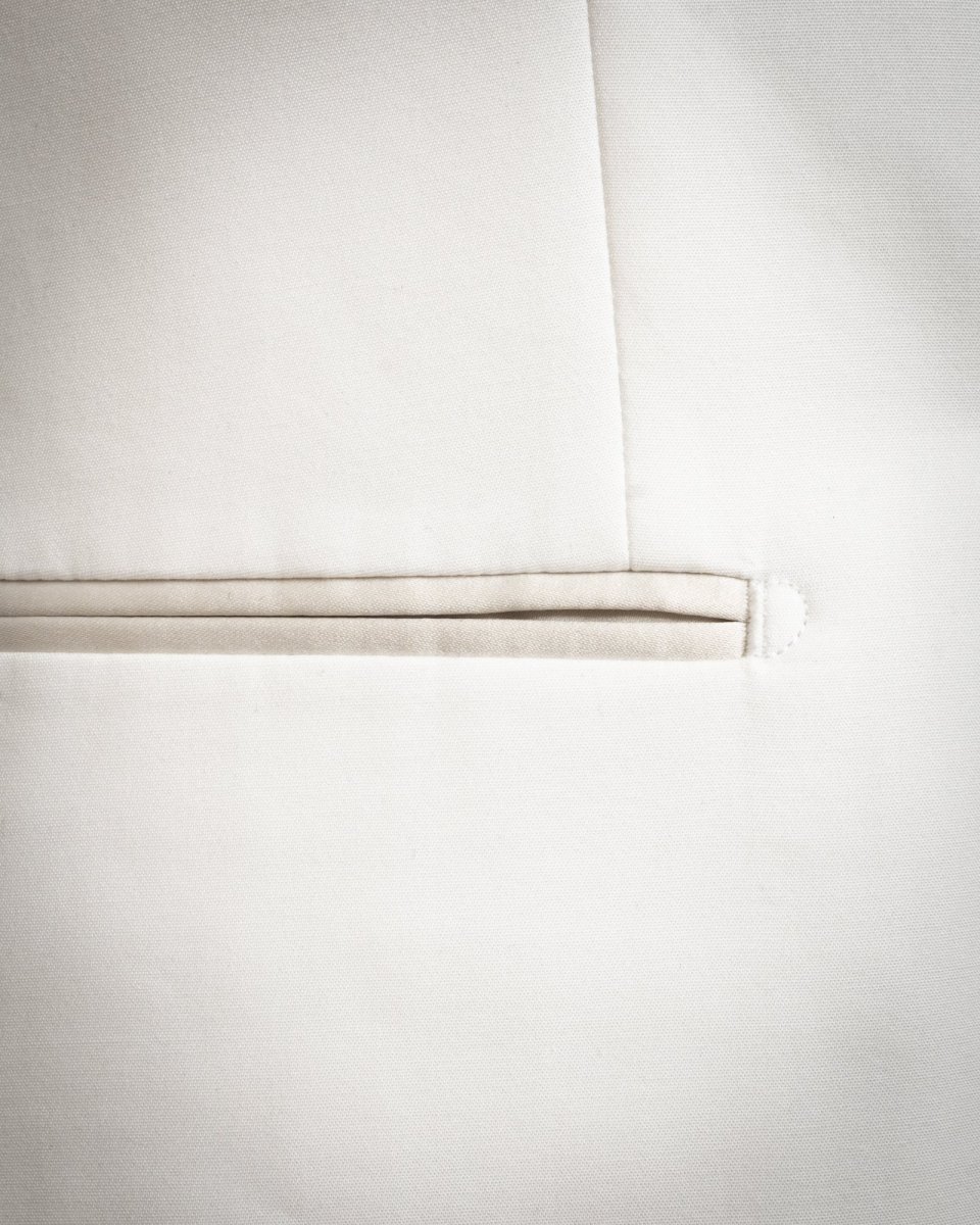 - Rever Sciallato in Raso Bianco: Il rever sciallato in raso bianco aggiunge un tocco di lusso, esaltando l’eleganza complessiva dello smoking.