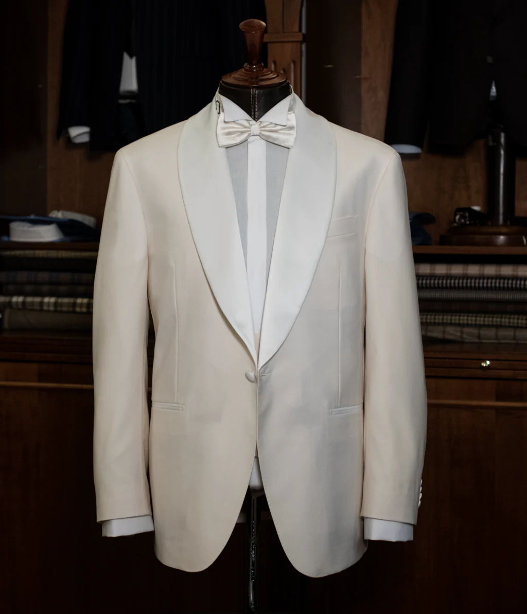 Lo Smoking Donatello Off-White è la quintessenza dell’eleganza sofisticata, pensato per chi desidera un’immagine regale e luminosa. La tonalità Off-White, più calda e nobile del bianco puro, si sposa perfettamente con i dettagli preziosi come la fodera oro, creando un capolavoro sartoriale ideale per i grandi eventi e le cerimonie più prestigiose.